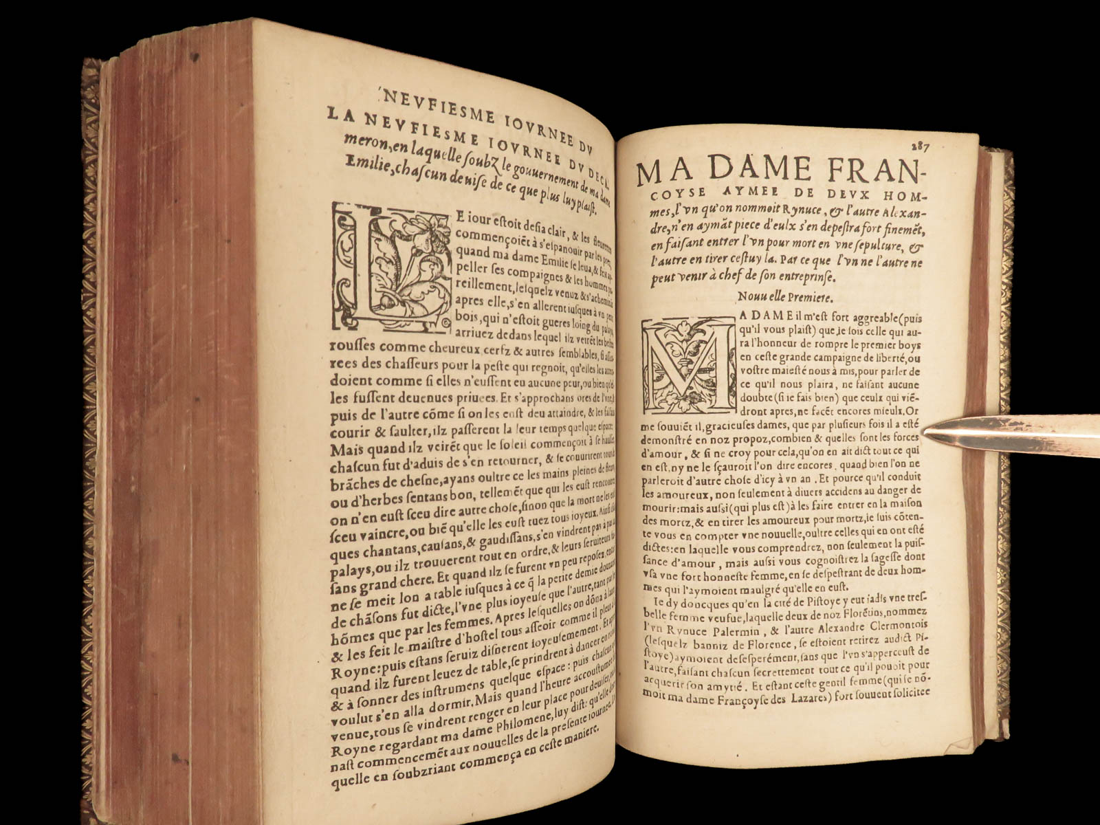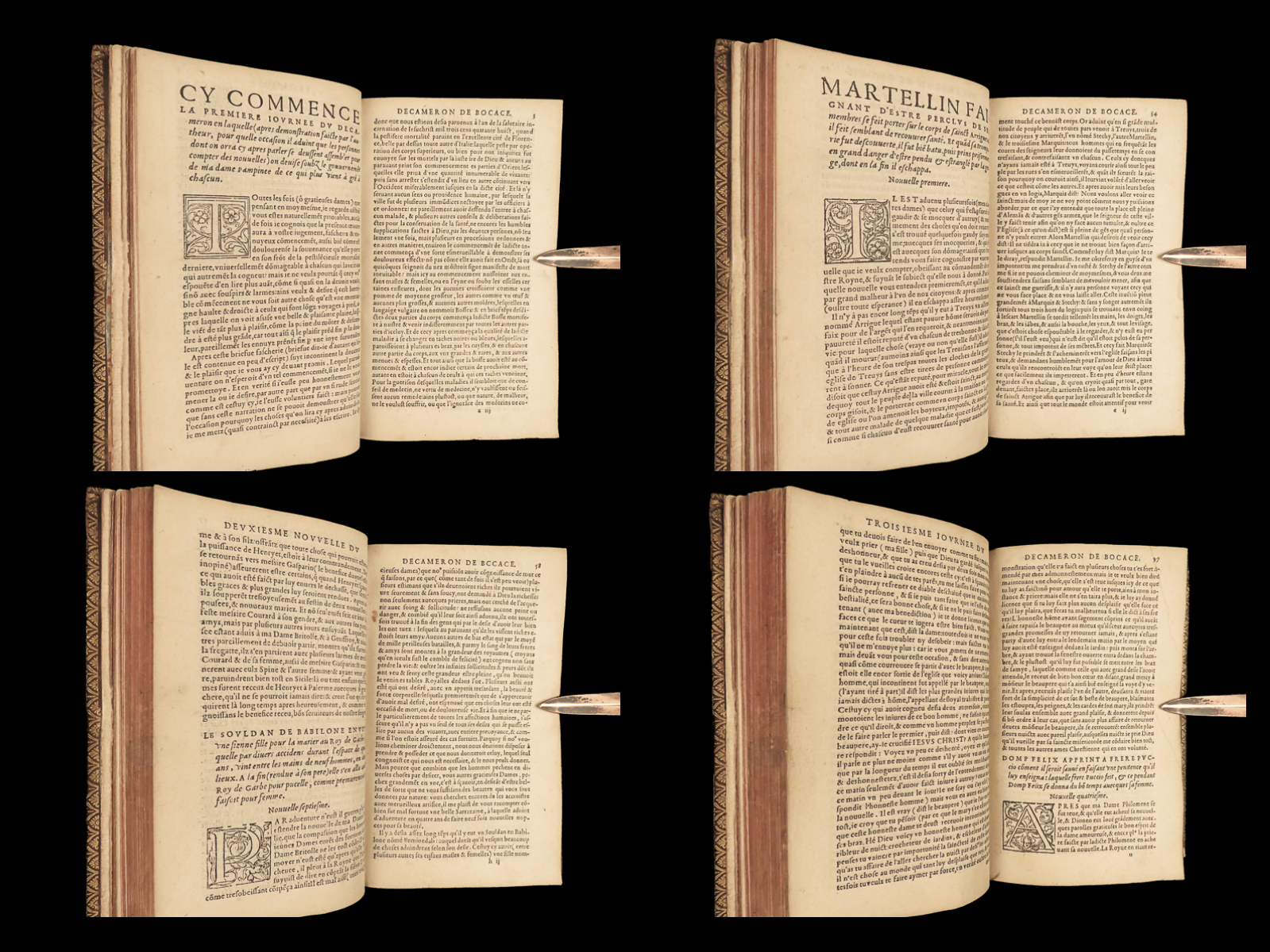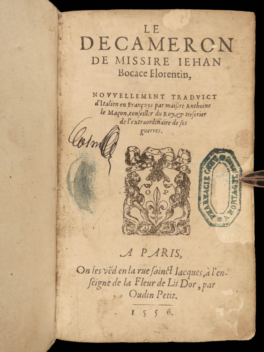 This 1556 French edition was published in Paris by Thibout and is considered to be a very rare 16th-century printing of Boccaccio.