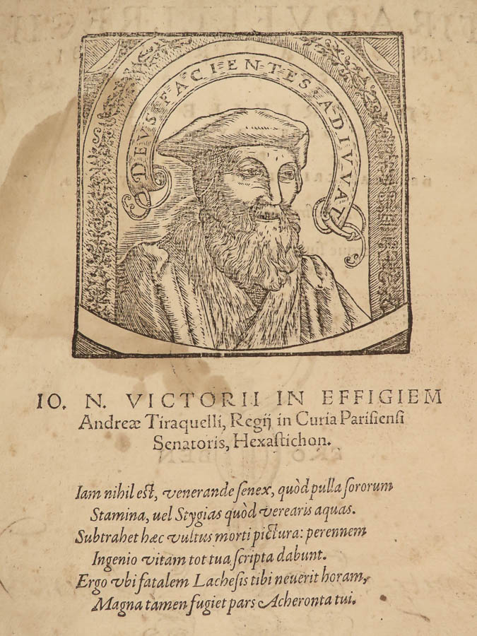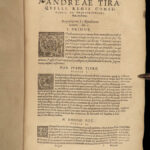 Andre Tiraqueau was an early 16th-century French jurist whose contributions to the French legal system were recorded in many of his legal treatises. This 1561 tome taken from the complete works of Tiraqueau includes two of his most important legal treatises: