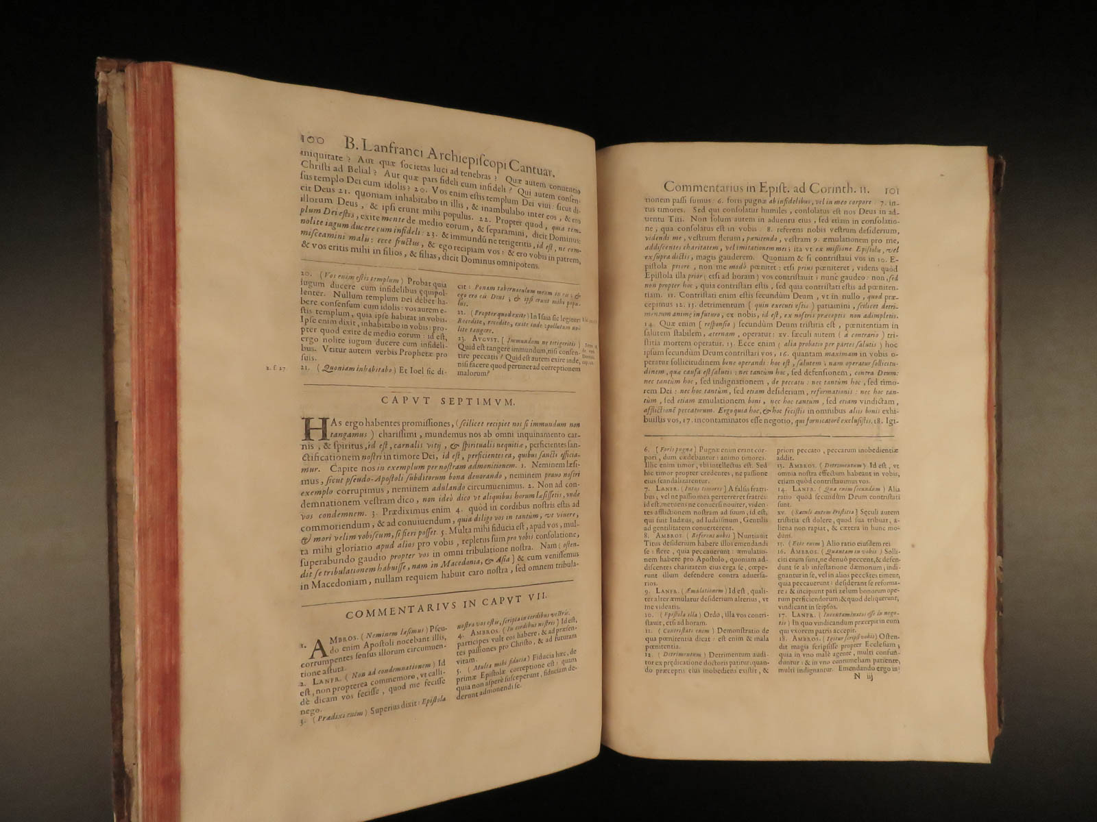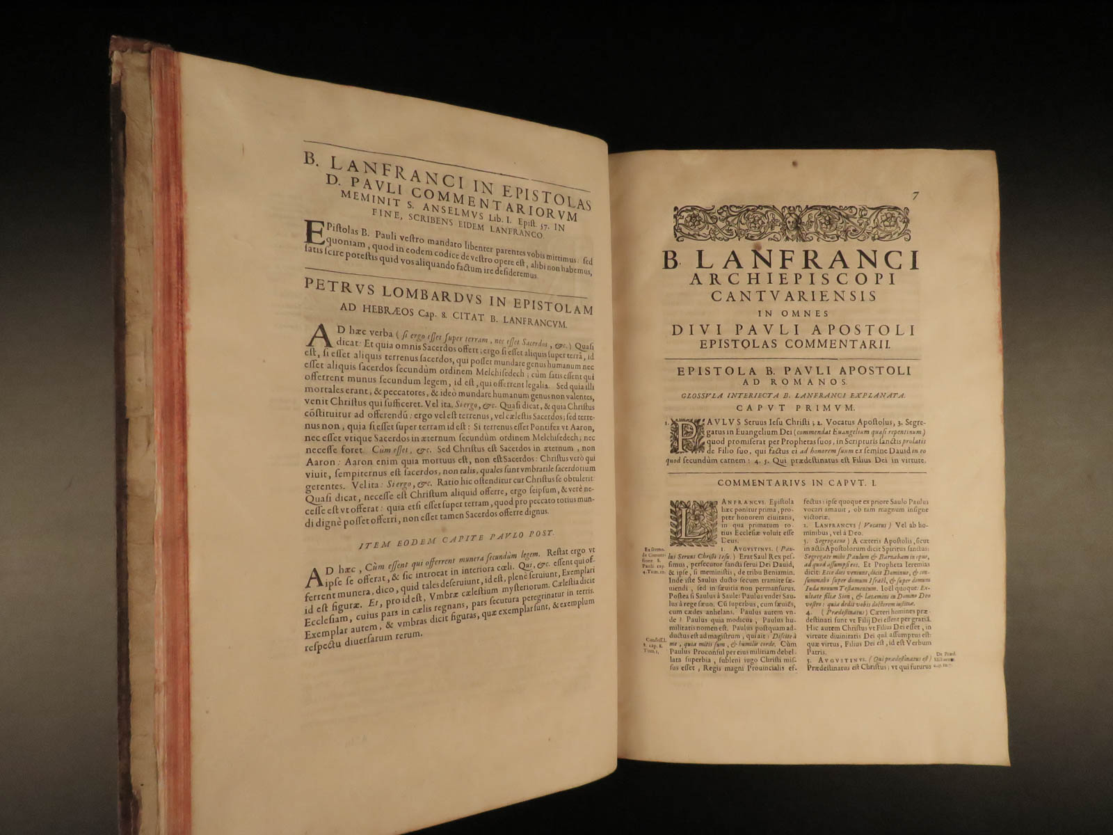 Lanfranc was an 11th-century Italian jurist known for his conversion to a Benedictine monk in Normandy. Lanfranc eventually became known as Lanfranc of Canterbury when he became the Archbishop of Canterbury. While few written works of Lanfranc exist today, his best-known book was ‘De Corpore et Sanguine Domini’ – a metaphysical work describing the differences between substance and accident. This, along with Lanfranc’s other minor works, is included in this 1648 Lutetia edition.
