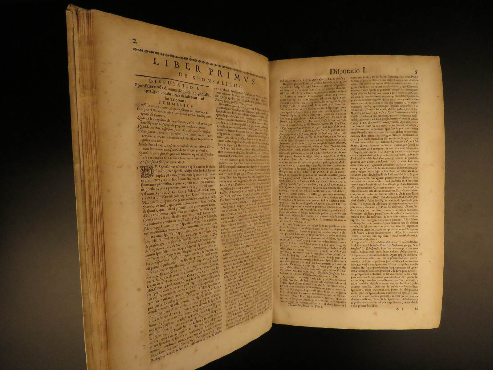 A rare and controversial Catholic work on marriage. Due to the material dealing with sexuality and sexual perversion, this book was put on the Prohibited Book Index. Originally published in 1602, this book went through several editions and languages until the mid-18th-century. Thomas Sanchez, a 16th-century Jesuit, wrote many influential treatises on morality, though ‘Disputationum de Matrimonii’ is by far his most important.