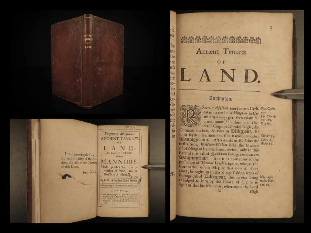 1679 1ed Ancient Tenures of Land Thomas Blount England Folklore Folk Customs