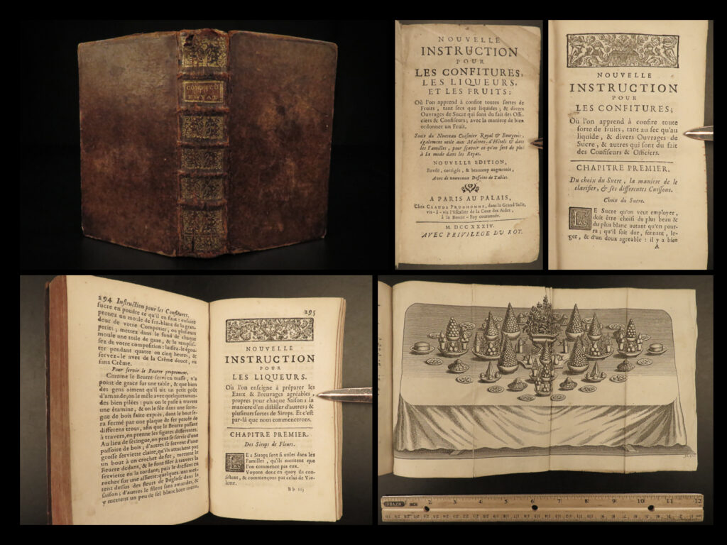 This 1734 printing of ‘Confitures’ was published in Paris by Prudhomme.