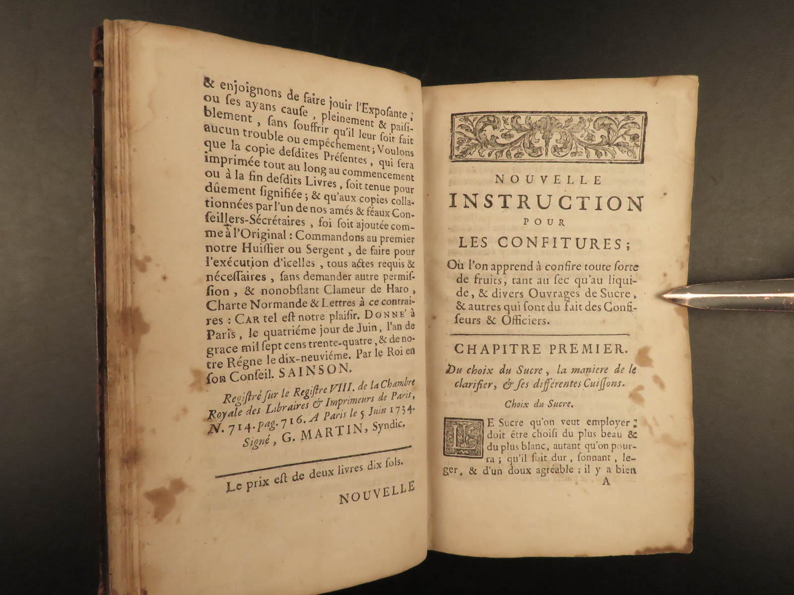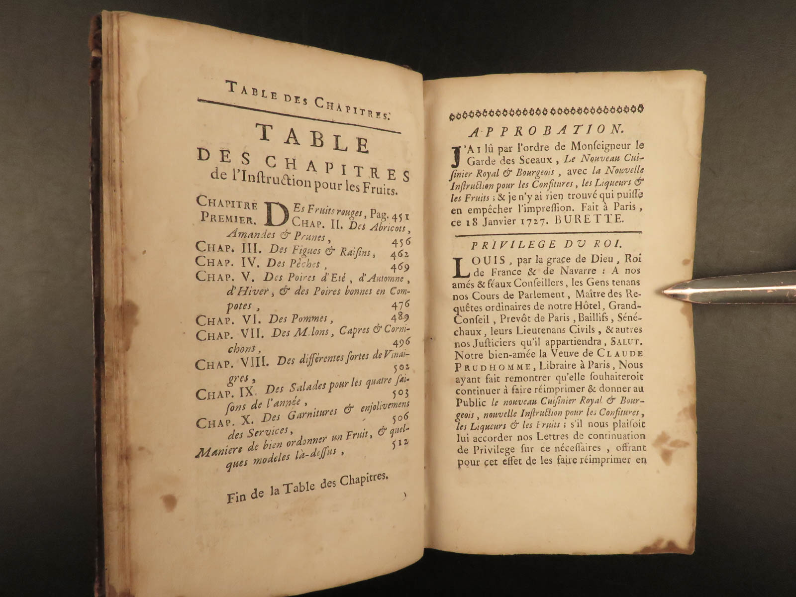 This 1740 printing of ‘Confitures’ was published the same year as Massialot’s death and features a charming folding engraving of a table setting at the end.