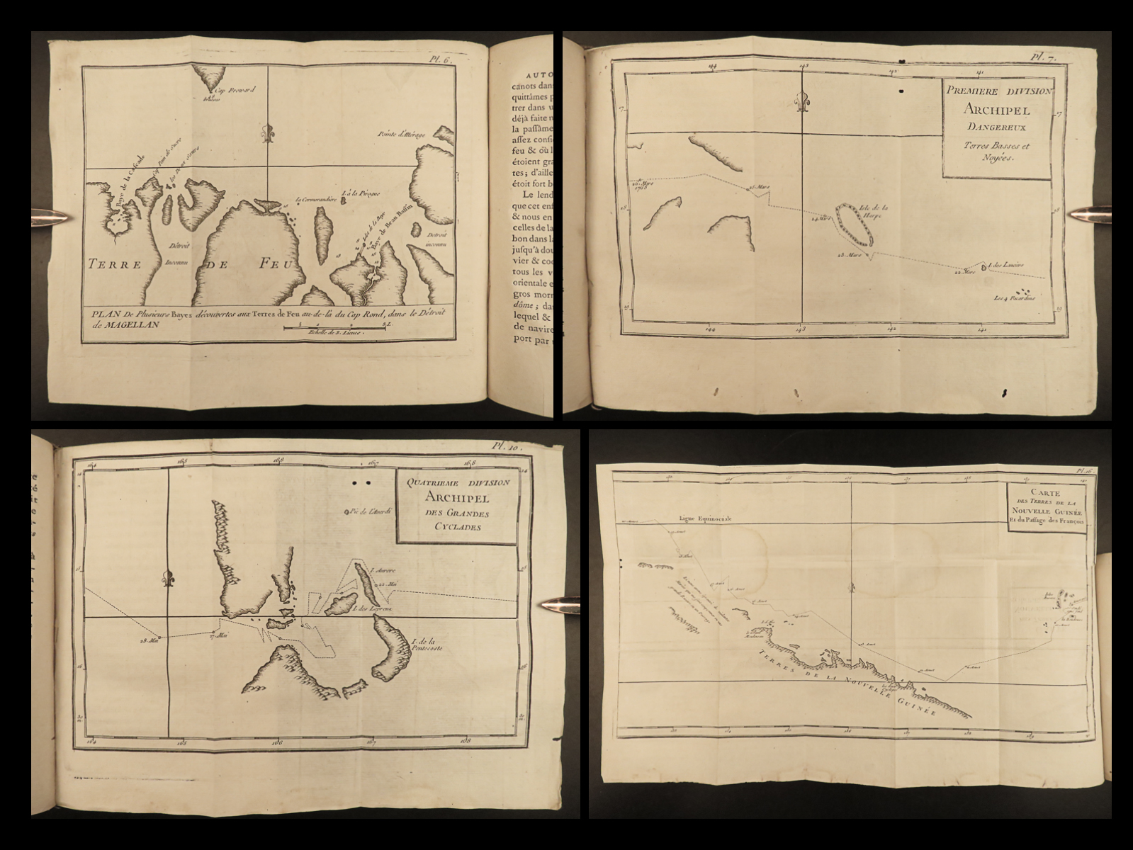 1772 Voyages of Louis Bougainville Pacific Ocean TAHITI Falkland Islands MAPS 2v SET