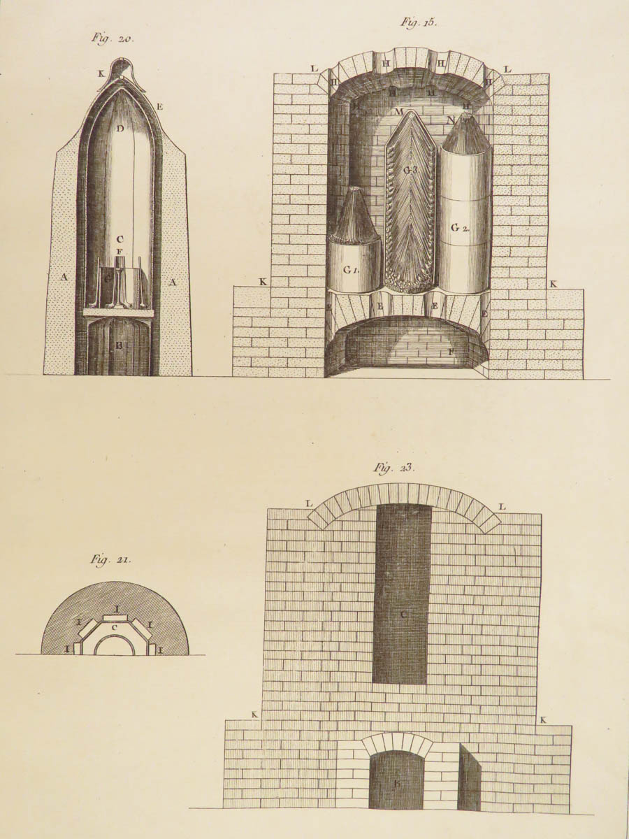 Duhamel du Monceau was an 18th-century French engineer and scientist who focused heavily on agriculture, horticulture, and forestry. His research extended to other sciences including branches of physics and chemistry. In his book ‘Arts et Metier’, Monceau describes his findings, discoveries, and techniques in wood working, tile work, building furnaces and kilns, building pipes for smoking tobacco, wax and candle making, and much more. Each of these sections includes impressive, full-page engravings – the views of tile patterns are particularly interesting.