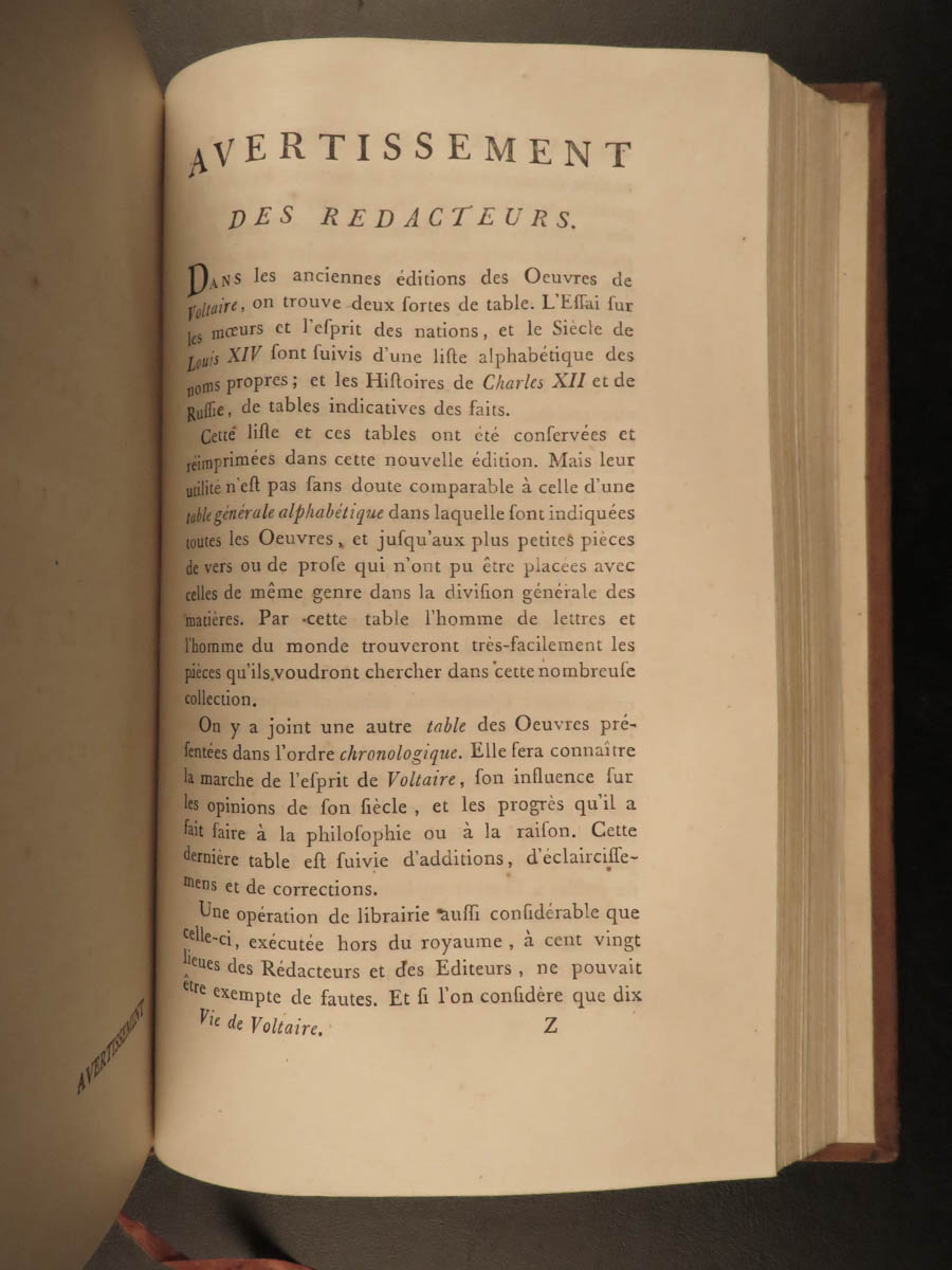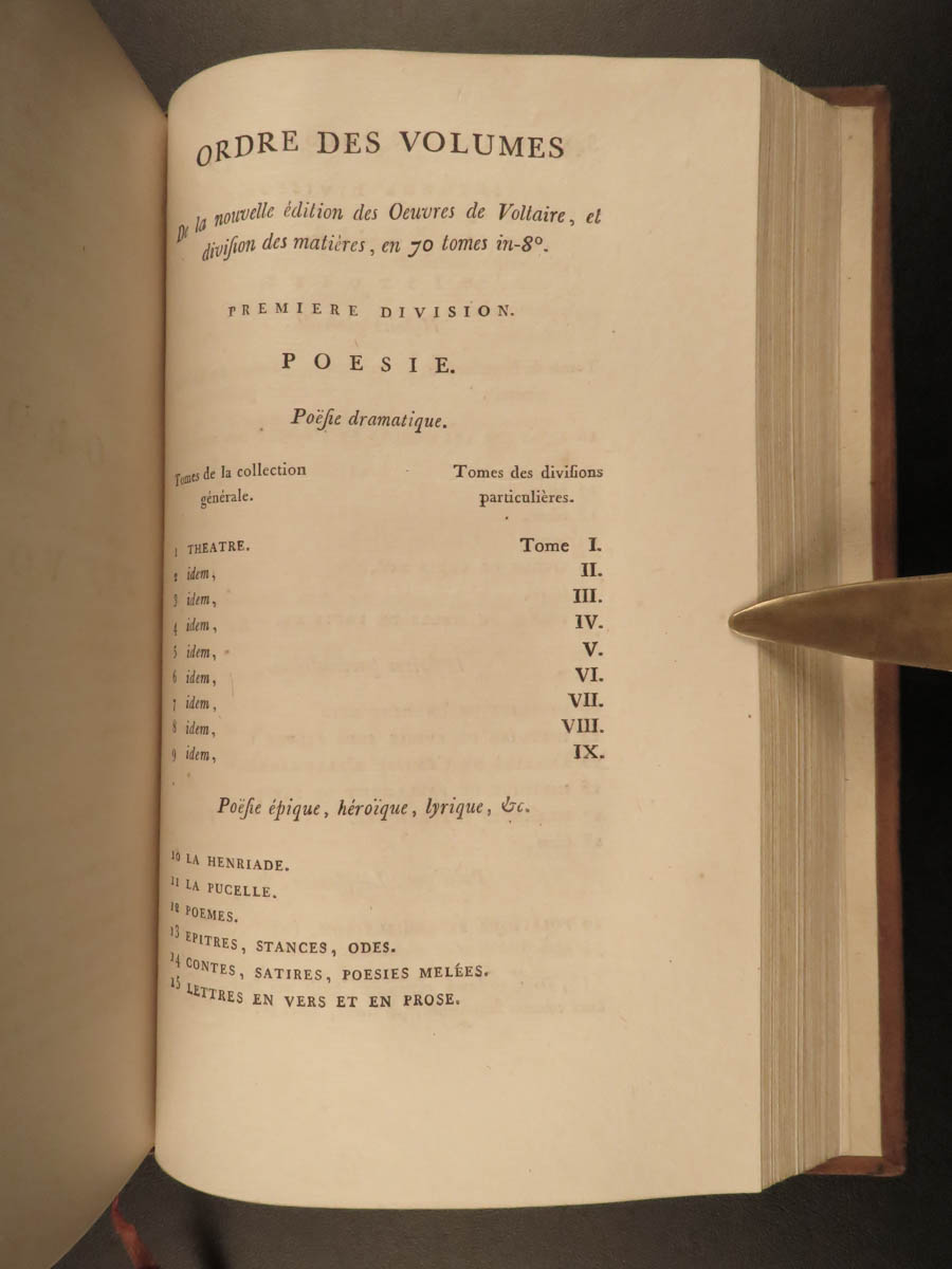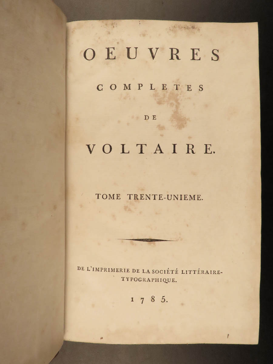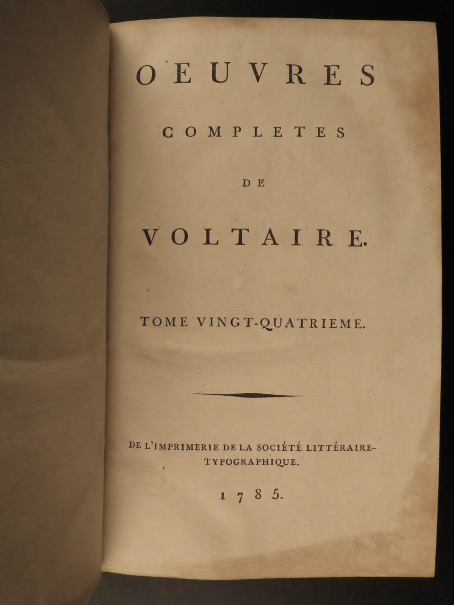 This enormous set of 60 volumes was published in Kehl and contains many of Voltaire’s most famous works. It also contains his physics studies and correspondence, much of which had never been published.