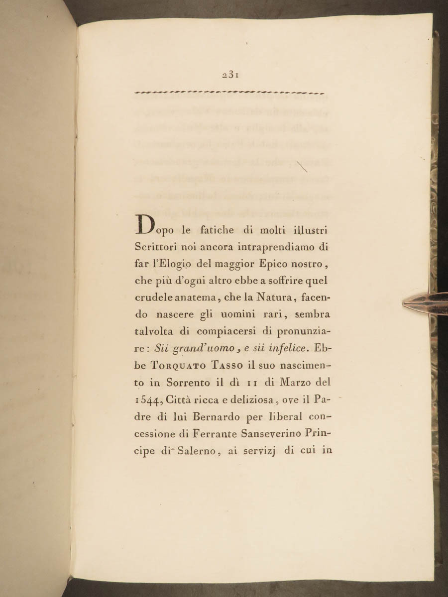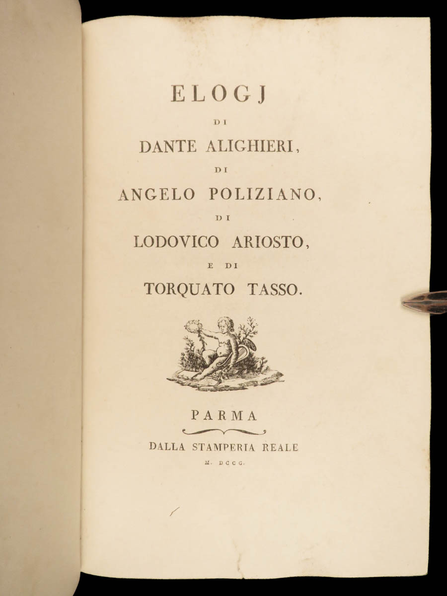 Angelo Fabroni was an 18th-century Italian historian who is remembered for his praise of famous Italian authors. In his book ‘Elogi di Dante, Poliziano, Ariosto, e Tasso’, Fabroni provides an essay on each of the four literary giants. This works has proved to be an important biographical study on the poetry of ancient and medieval Italian poetry. Curiously, this book is exceedingly rare and valuable and is not known to many Italian poetry bibliographies.