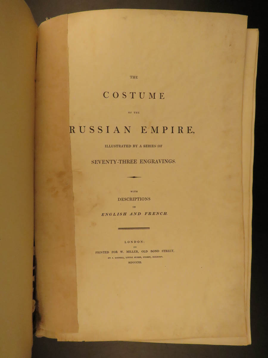 William Alexander’s ‘Costume of the Russian Empire’ is one of the best illustrated portrayals of Russian culture from peasants to royalty. Alexander took information available to him on Russian history and collected into one book – each of the illustrations is accompanied by a short descriptive text in both English and French. The illustrations depict costumes from Lapland, Finland, Estonia, Tartary, Kamtshakta, and other Northern Russian areas.
