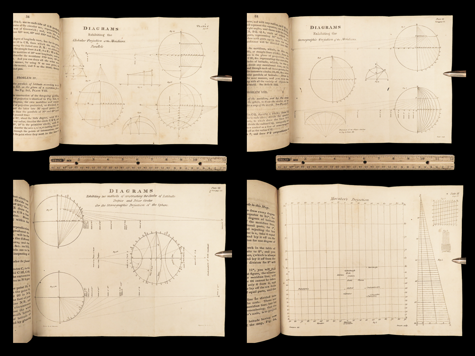 Alexander Jamieson was an early 19th-century Scottish textbook writer known for his works of grammar, mechanics, and geography. It was, however, his geography and atlas books that brought him his most prestige. In fact, his 1814 treatise “Construction of Maps” proved to be an important reference for cartographers and historians, filled with impressive folding engravings and maps. Jamieson describes techniques for drawing longitude and latitude lines, correctly illustrating rivers, and much more!