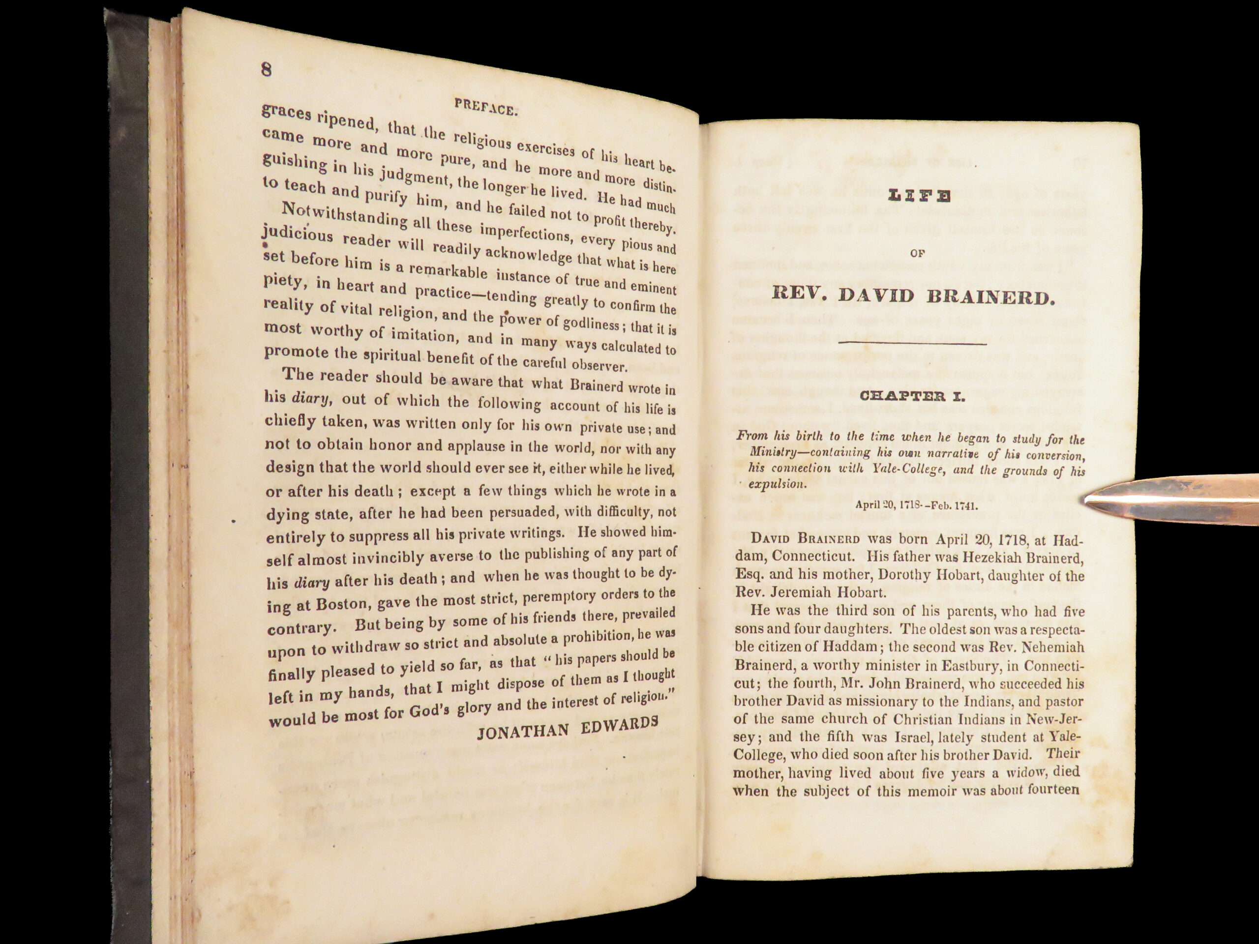‘The Life of David Brainerd’ is a biographical account of the famous evangelical missionary by theologian Jonathan Edwards. Edwards took Brainerd’s personal diary and edited and published it as a report on Brainerd’s missions to the Native Americans in Delaware and New Jersey. While Edwards left most of the diary intact, he changed a large portion of the work to present Brainerd as the antithesis to Arminianism. ‘Life’ had a major influence on the way that Native Americans were portrayed to the American and English public.