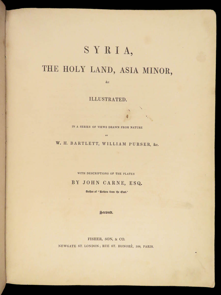 Syria, the Holy Land, Asia Minor, &c., illustrated. In a series of views drawn from nature by W.H. Bartlett, William Purser (Thomas Allom), &c. With descriptions of the plates by J. Carne