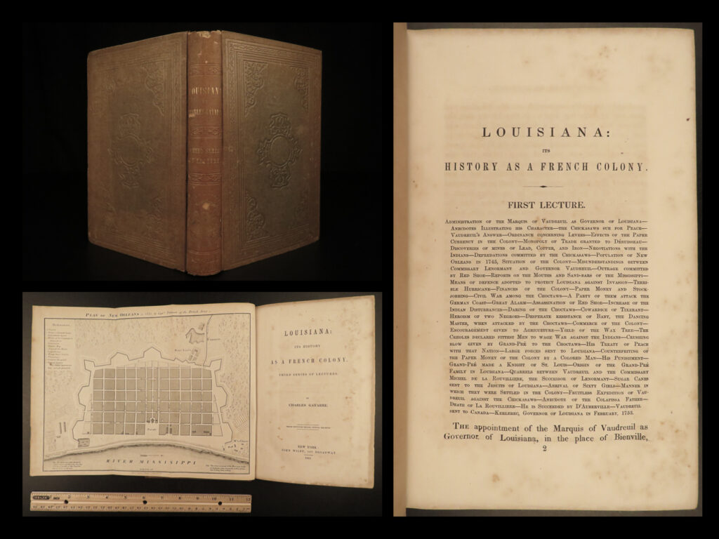 This 1852 first edition of ‘Third Series of Lectures’ is a complete work on its own and features a folding engraved plan of New Orleans. From the preface: “embracing the period which extends from its discovery to 1769.”