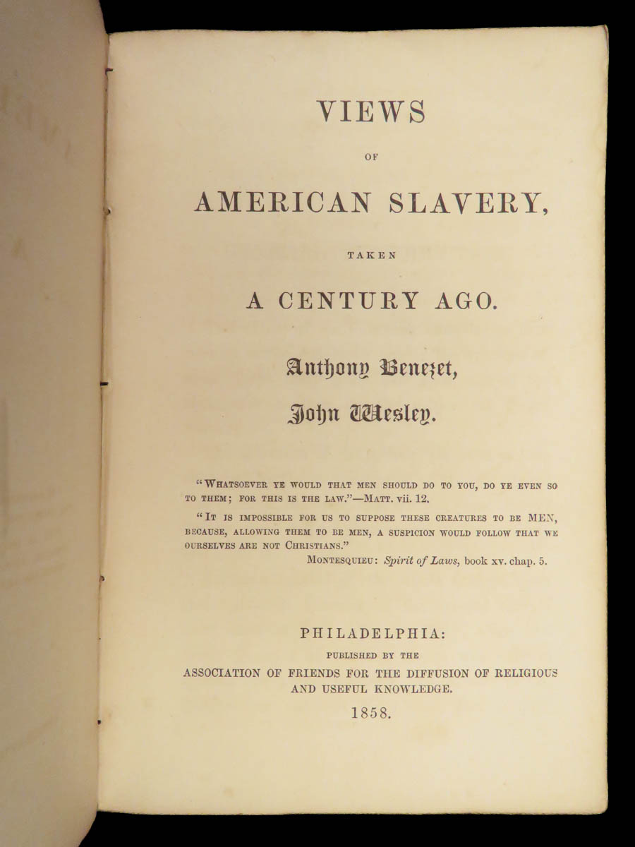 1858 SLAVERY Benezet & John Wesley on Early American Slave Trade Philadelphia