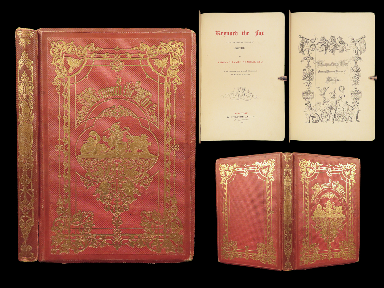Thomas James Arnold was a barrister and writer, best known for his translations from Goethe and the classics. This 19th-century English edition of ‘Reynard the Fox’ is a translation of Geothe’s Reineke Fuchs, which was based upon Gottsched’s prose version of the Low German poem Reinke de Vos which includes numerous illustrations by the famous Wilhelm Von Kaulbach and Joseph Wolf.
