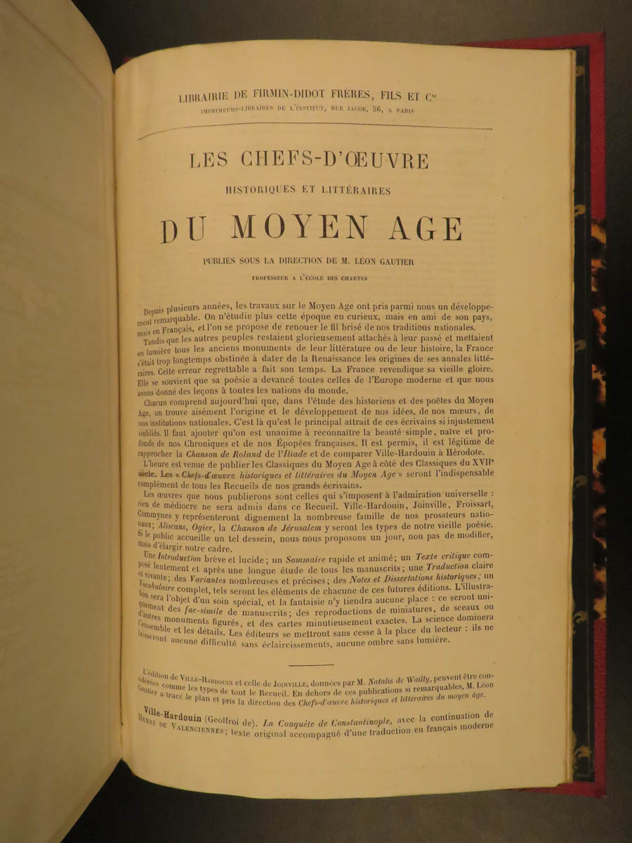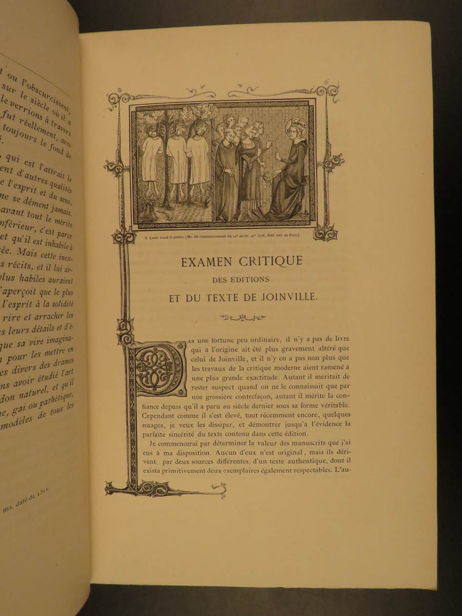 Jean de Joinville was a 13th-century French historian who is best known for his biographical work on the life of Saint Louis, or King Louis IX of France. This work is perhaps the most authentic and best account of the King Louis leadership during the Seventh Crusade. This 1874 French edition was collected and edited by J Natalis de Wailly. Wailly includes impressive facsimile views of original portions of Joinville’s text.