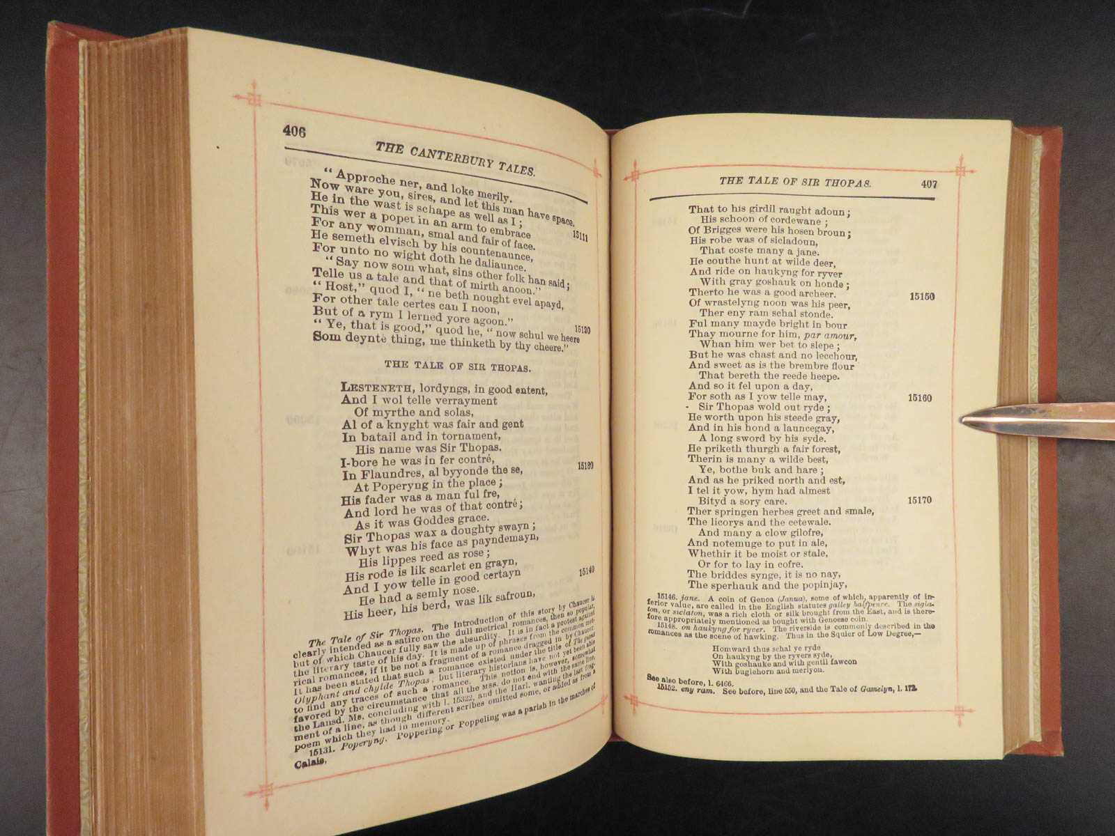 This late 19th-century printing of the poems of Chaucer includes, of course, ‘Canterbury Tales’, but also features works such as ‘Cuckow and Nightgale’, ‘Assembly of Foules’, and other lesser-known poems. Textual notes provided by Thomas Wright.