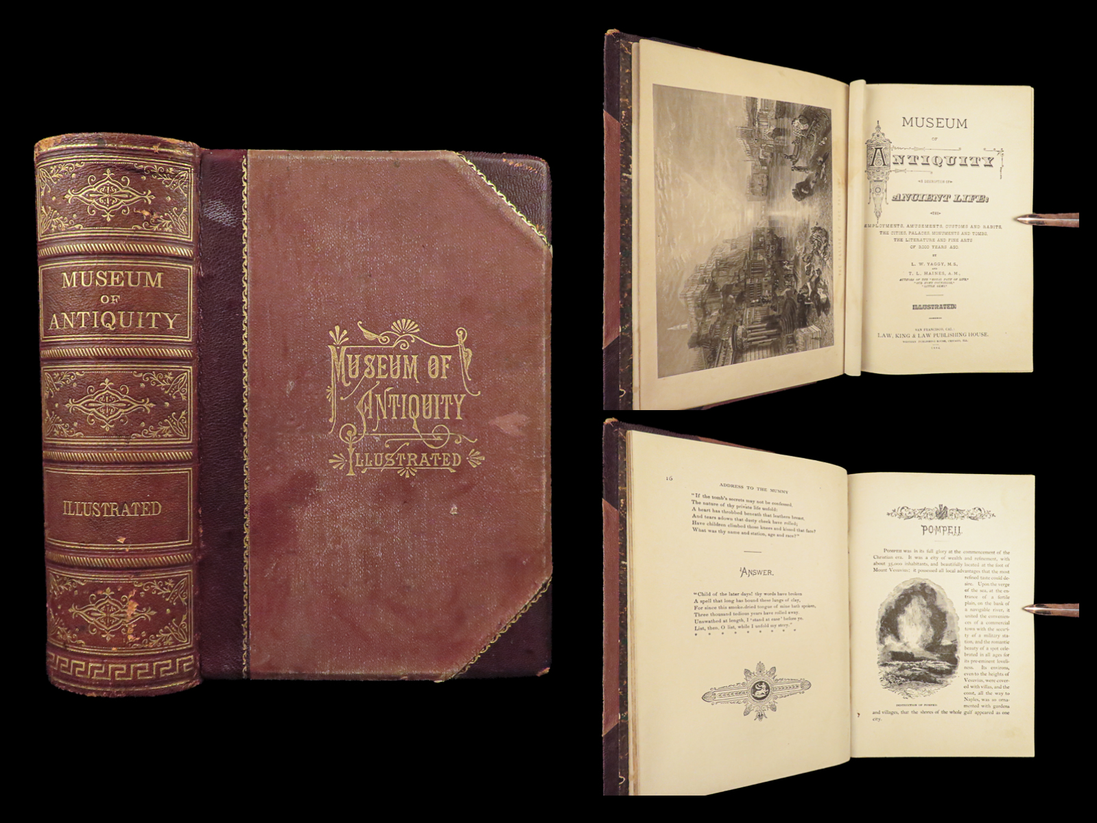 “Museum of Antiquity” by Levi W. Yaggy and Thomas Louis Haines is a heavily illustrated, comprehensive work that provides a condensed overview of ancient life, focusing on Egypt, Greece, and Italy. The book includes 180 engravings depicting the domestic life, amusements, employments, customs, cities, palaces, monuments, tombs, literature, and fine arts from over 3,000 years ago. findings from excavations in Troy, Nineveh, Babylon, and Pompeii.