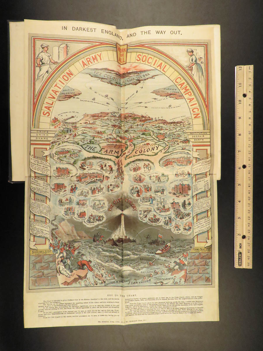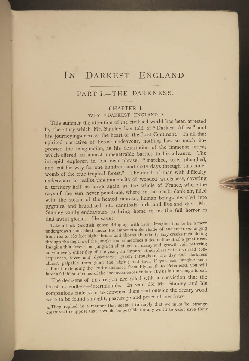 Booth wanted to end poverty. He proposed homes for homeless and establishing farms for to feed the hungry and provide jobs for the impoverished. This rare, first edition was published the same year as H.M. Stanley’s ‘Darkest Africa’ – a direct response to the famous African cultural book.