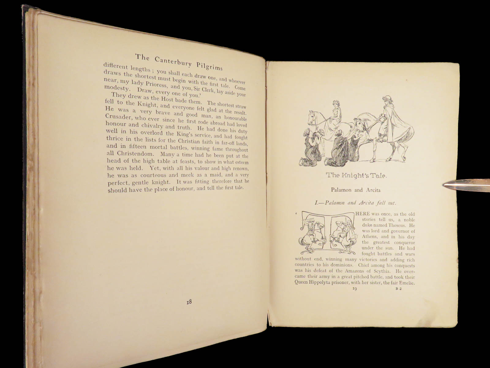 1906 chaucer canterbury tales pilgrim knights tale hugh thomson art fine binding | a scarce and wonderfully illustrated printing of the ‘<em>tales of the canterbury pilgrims</em>. ’ regarded as the “father of english literature,” the profoundly influential, geoffrey chaucer’s works are beloved and remain ever desirous. This retelling of the iconic ‘<em>canterbury tales</em>’ was compiled by children’s author frederick joseph harvey darton in collaboration with esteemed artist hugh thomson. Some of the more famous stories included are ‘<em>the knight’s tale</em>,’ ‘<em>the physician’s tale</em>,’ and ‘<em>the nun’s priest’s tale</em>. ’