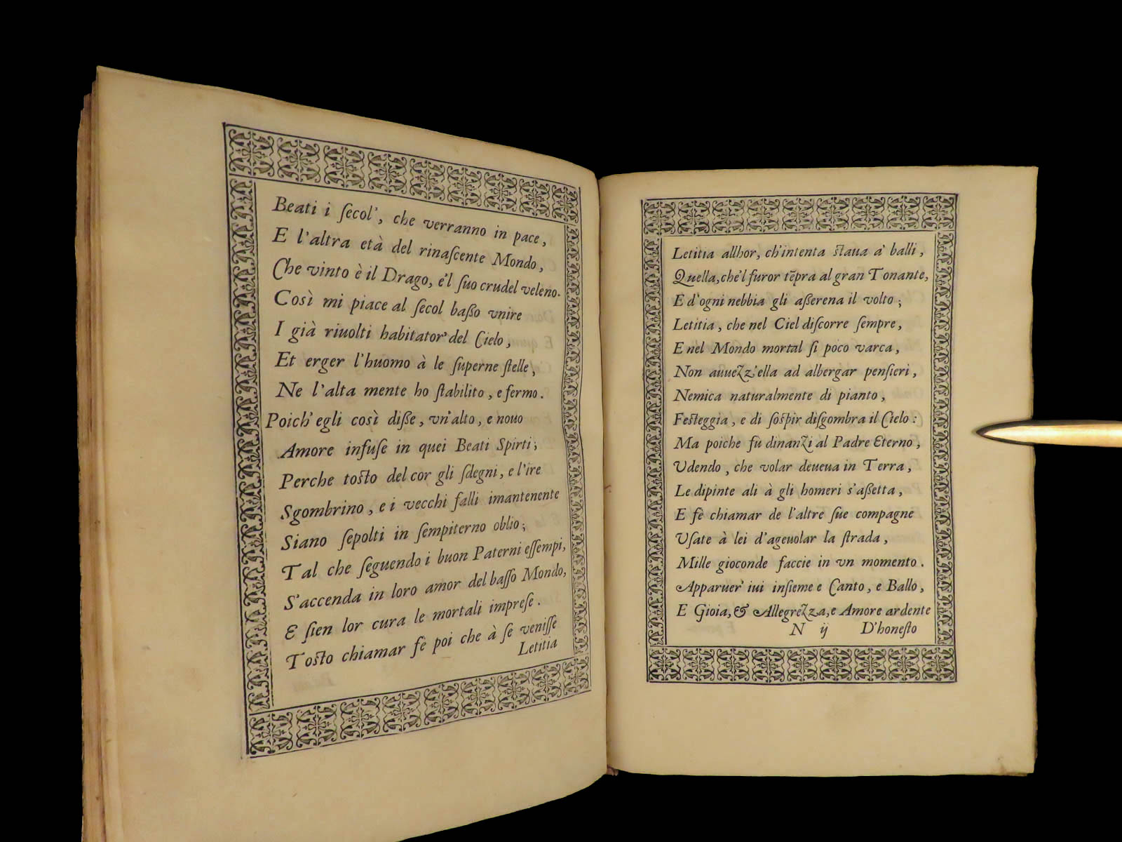The pairing of these two individuals makes this work an icon of Italian literature. This 1588 edition was published in Venice and features beautiful text borders and four full-page woodcuts.