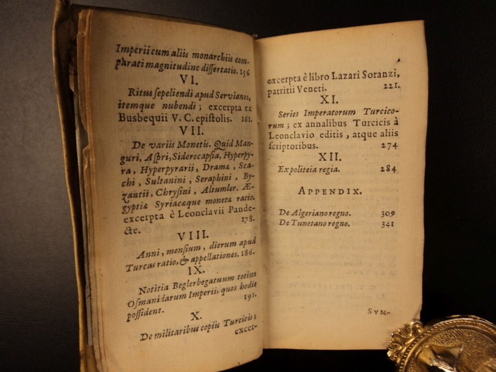 An incredible volume of two famous Elzevier works bound together – descriptions and histories of the Byzantine Empire, Turkey, Algeria, and Tunisia.