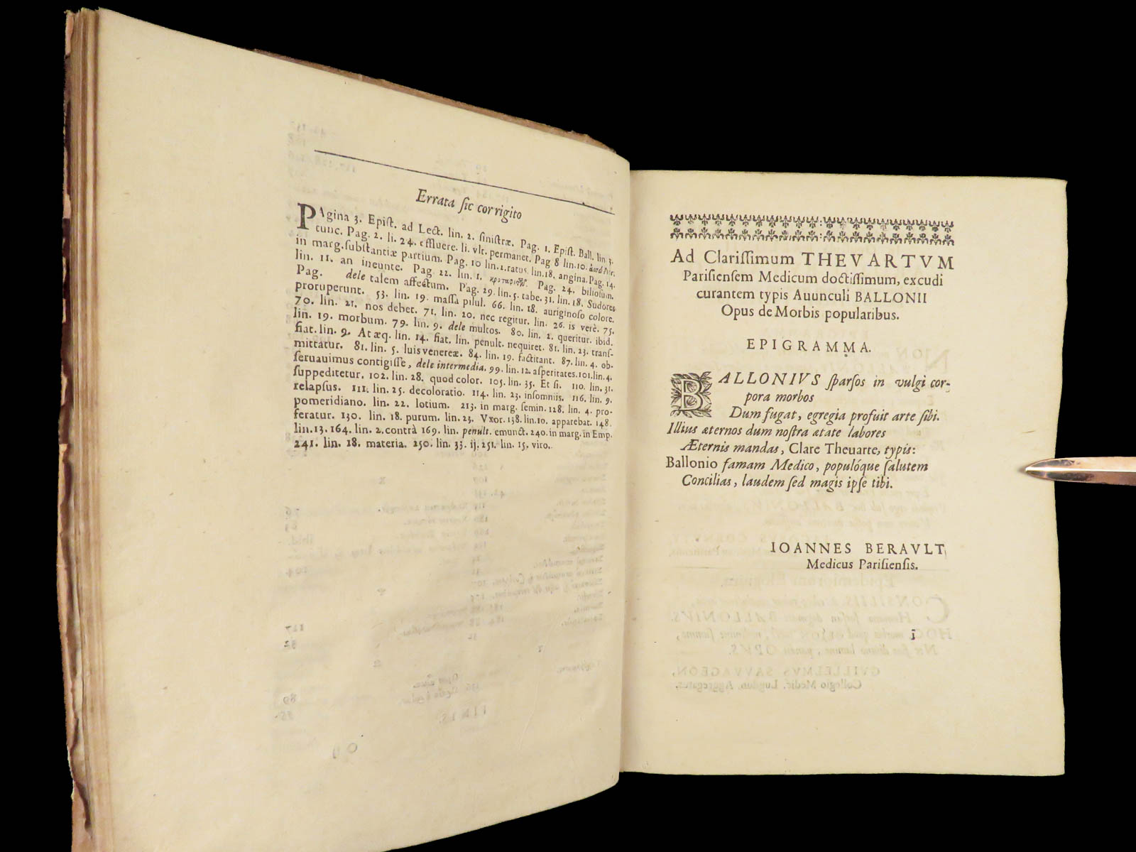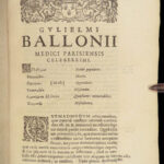 This 1640 printing of the works of Baillou was published in Paris edited and collected by Jacques Thevart.