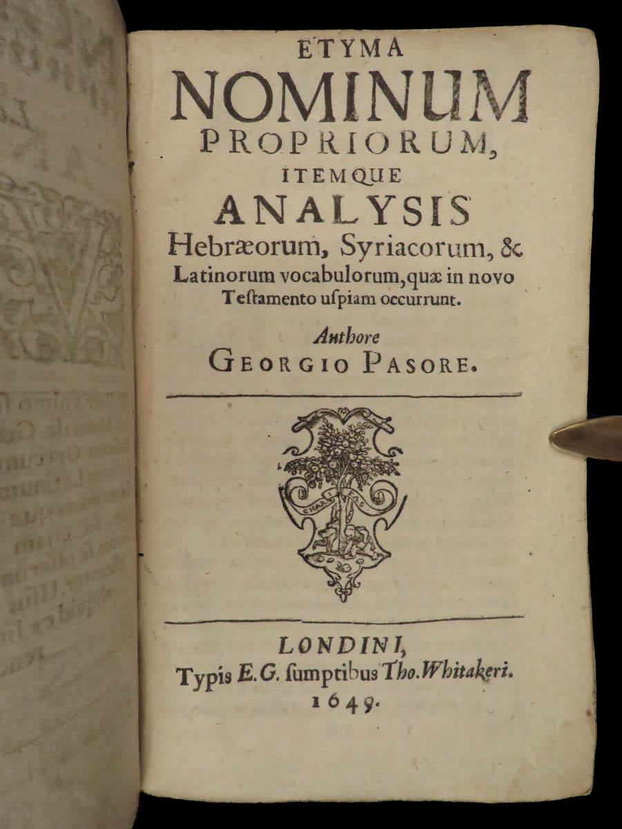 o ‘Etyma Nominum Propriorum, Itemque Analysis Hebræorum, Syriacorum, & Latinorum vocabulorum, quæ in novo Testamento uspiam occurrunt.’