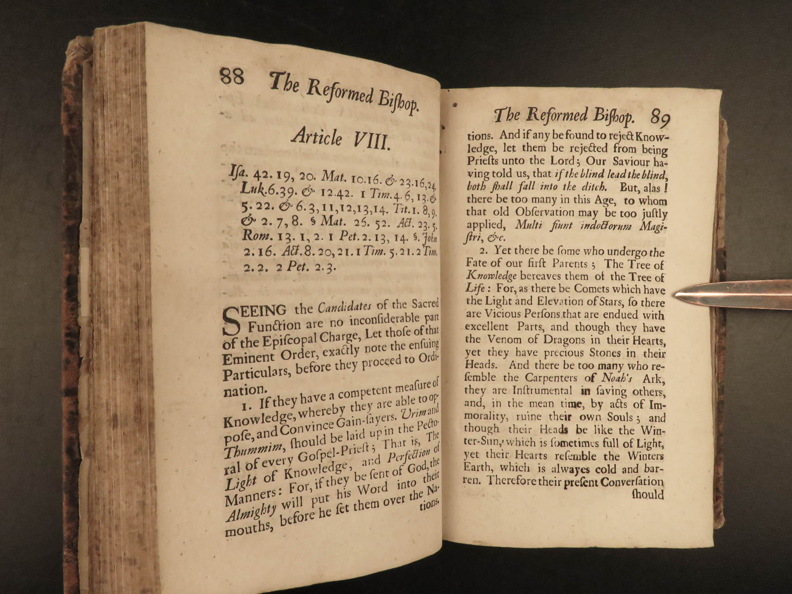 “The Reformed Bishop” by Catholic priest James Gordon is a 1679 treatise on the behaviors and bishops and church fathers. Gordon includes 19 separate articles examining Protestant bishops’ conduct which, as expected, enraged the same Protestant bishops. Scottish churchmen heavily prosecuted Gordon for this treatise and banned the book claiming his views to be lies and deceitful. This work even contains references to the Gunpowder Plot and its effects on the church some 70 years later.