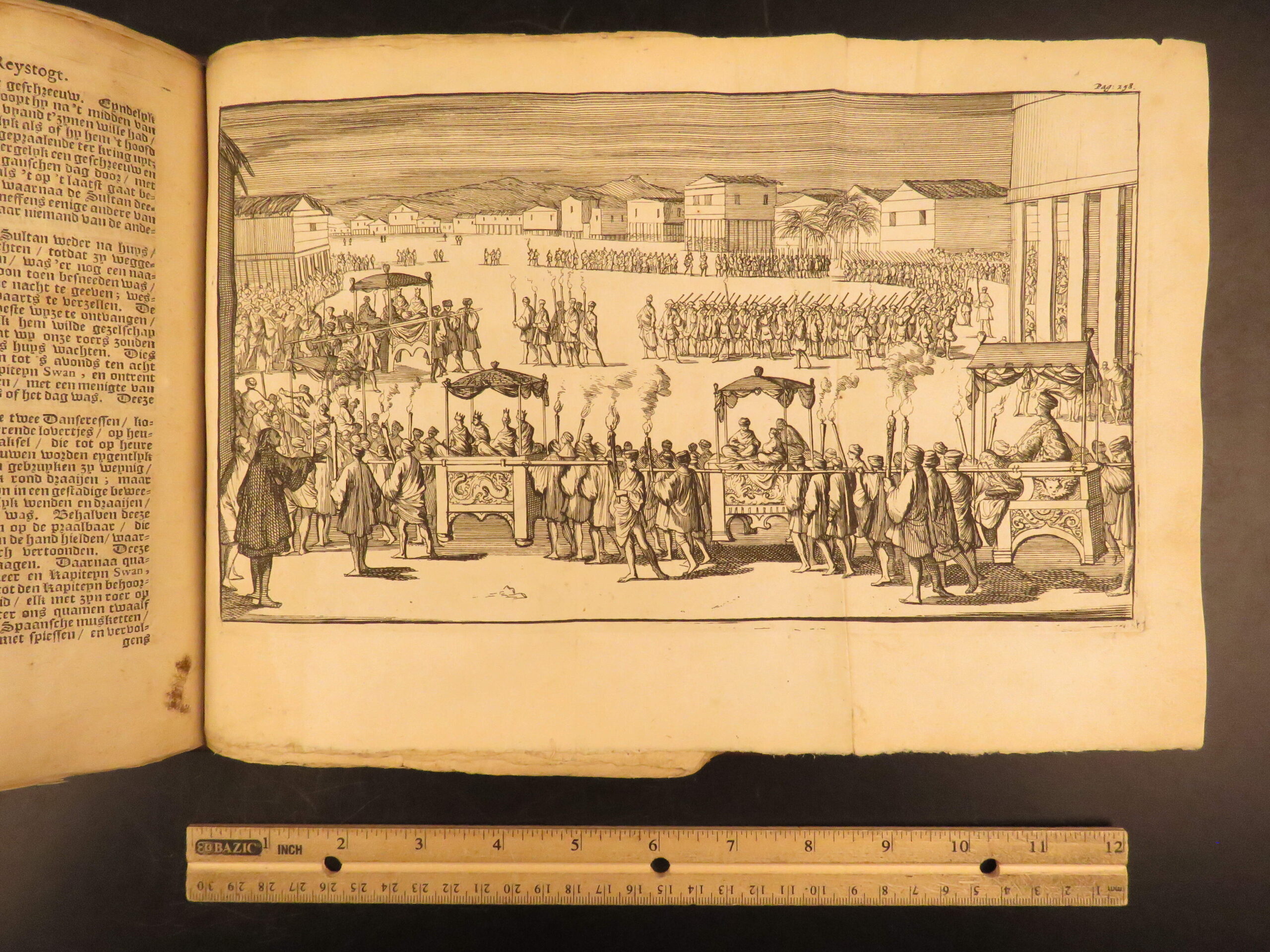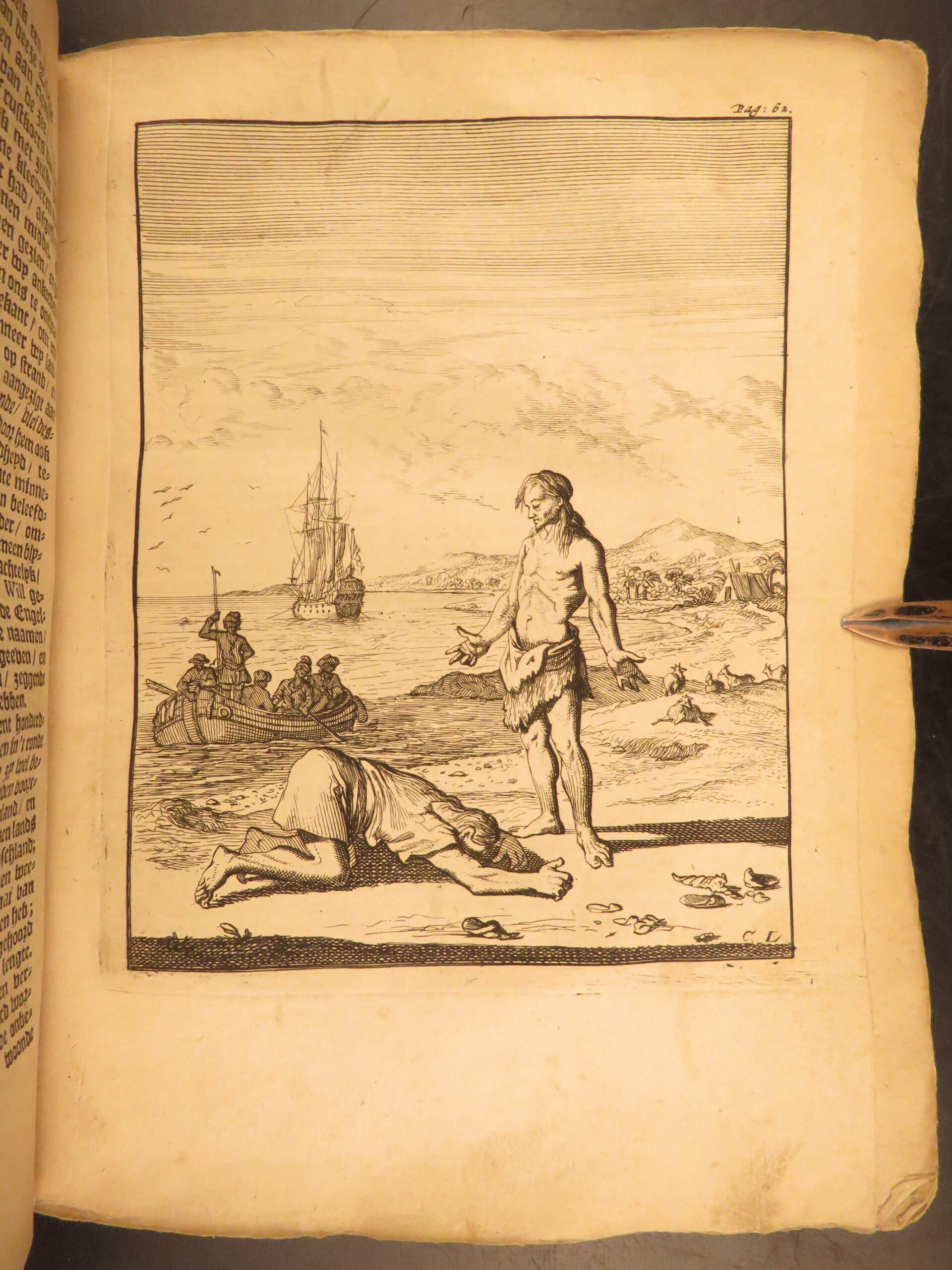 This volume from the 1698 Dutch edition is a translation of “New Voyage Round the World” and includes numerous full-page and folding engravings.