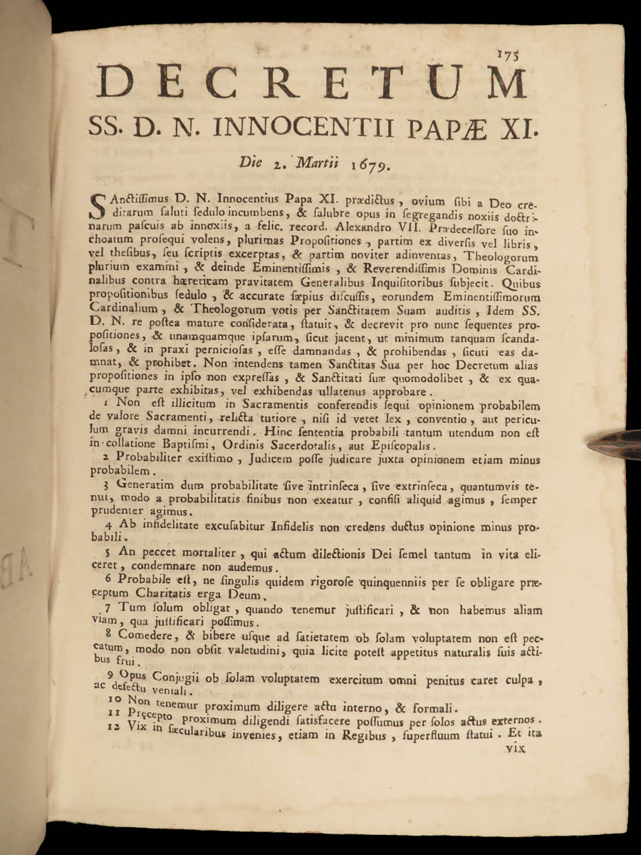 1749 Forbidden Books Damnatorum Thesium Catholic Heresy Bulls Pope Alexander VII
