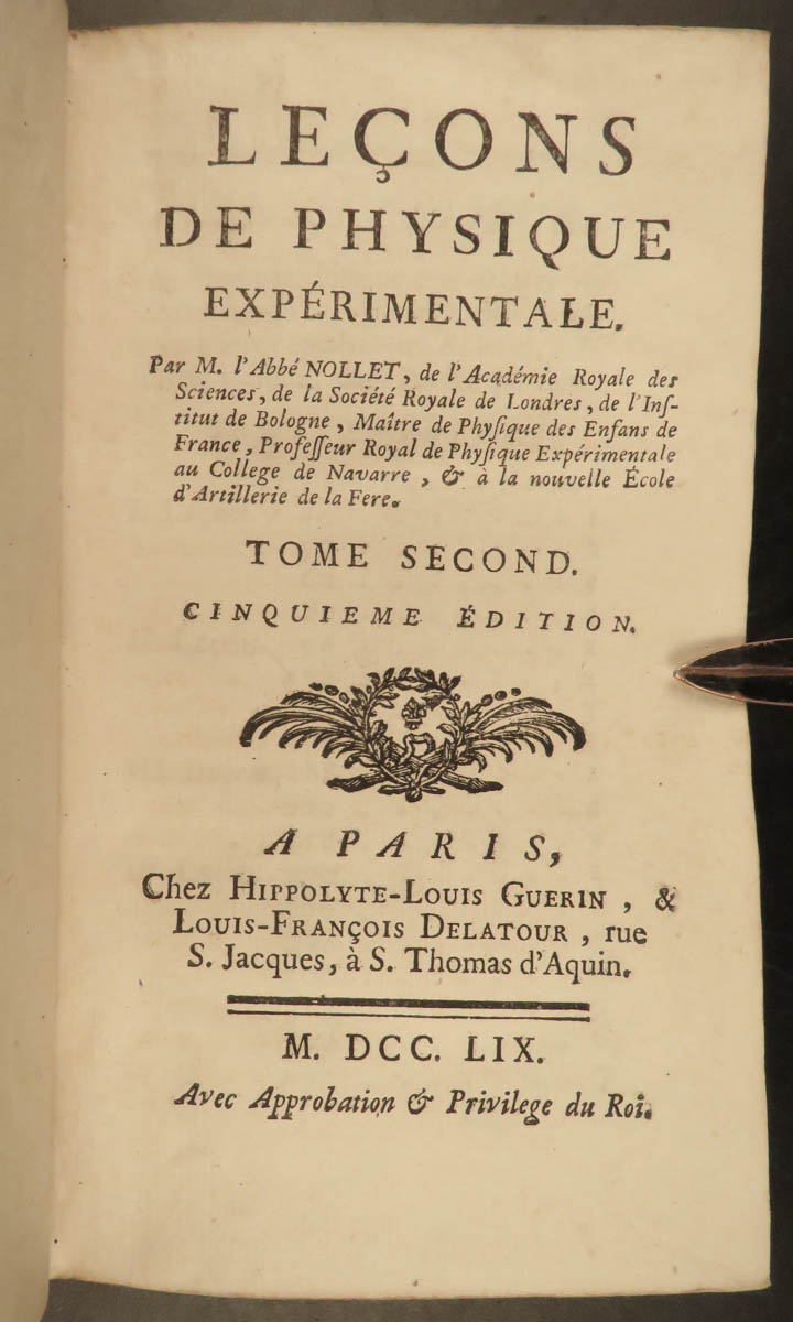 Jean-Antoine Nollet was an 18th-century French physicist who made incredible contributions to world of physical science. In his ‘Leçons de Physique Experimentale’ he covers the results and findings in his own such as useful tools and instruments, uses for fire and heat, pendulums, clocks and sundials, compasses, wind and weather, sound research waves, light, machines and mechanics, and most importantly electricity!
