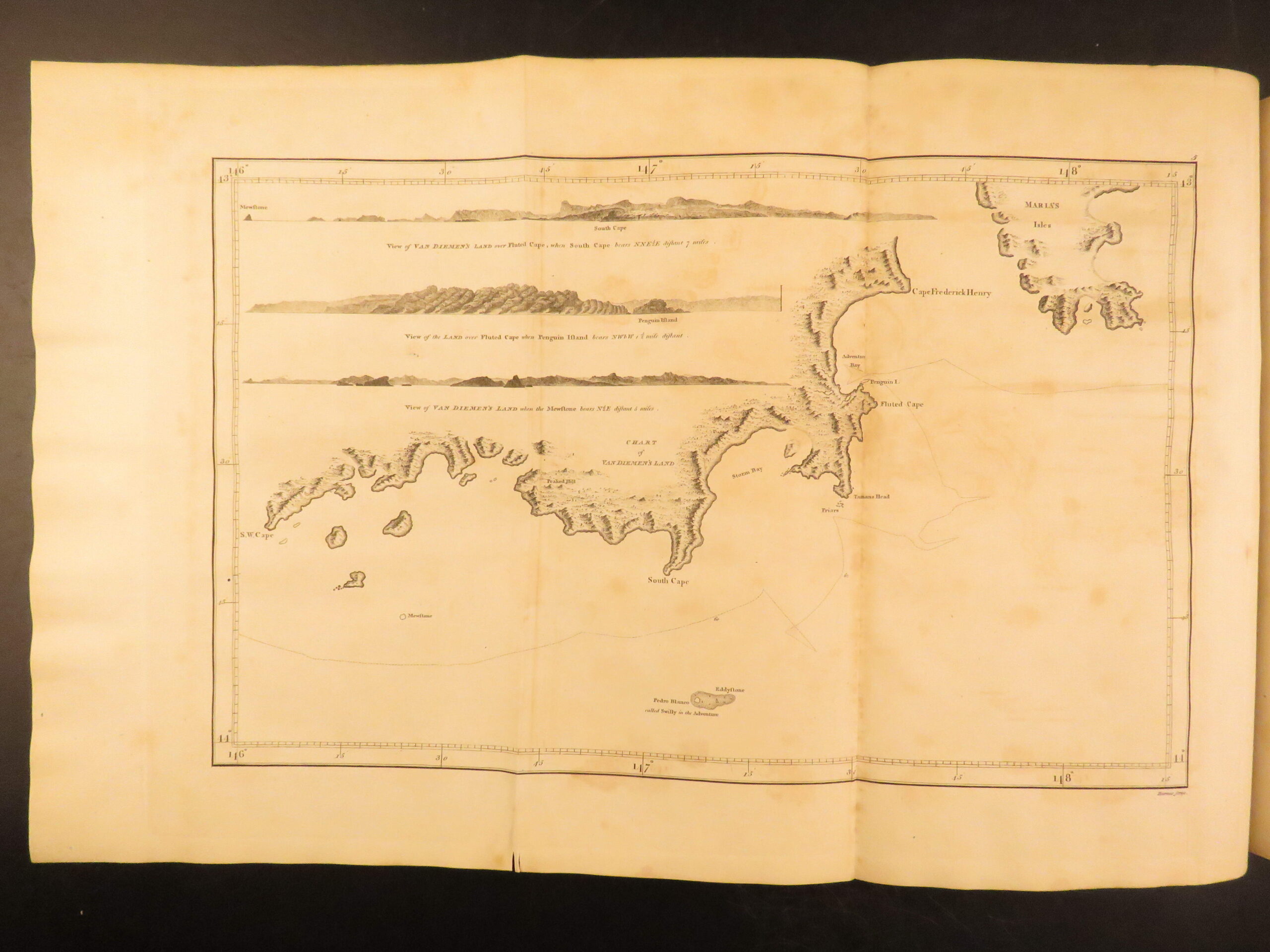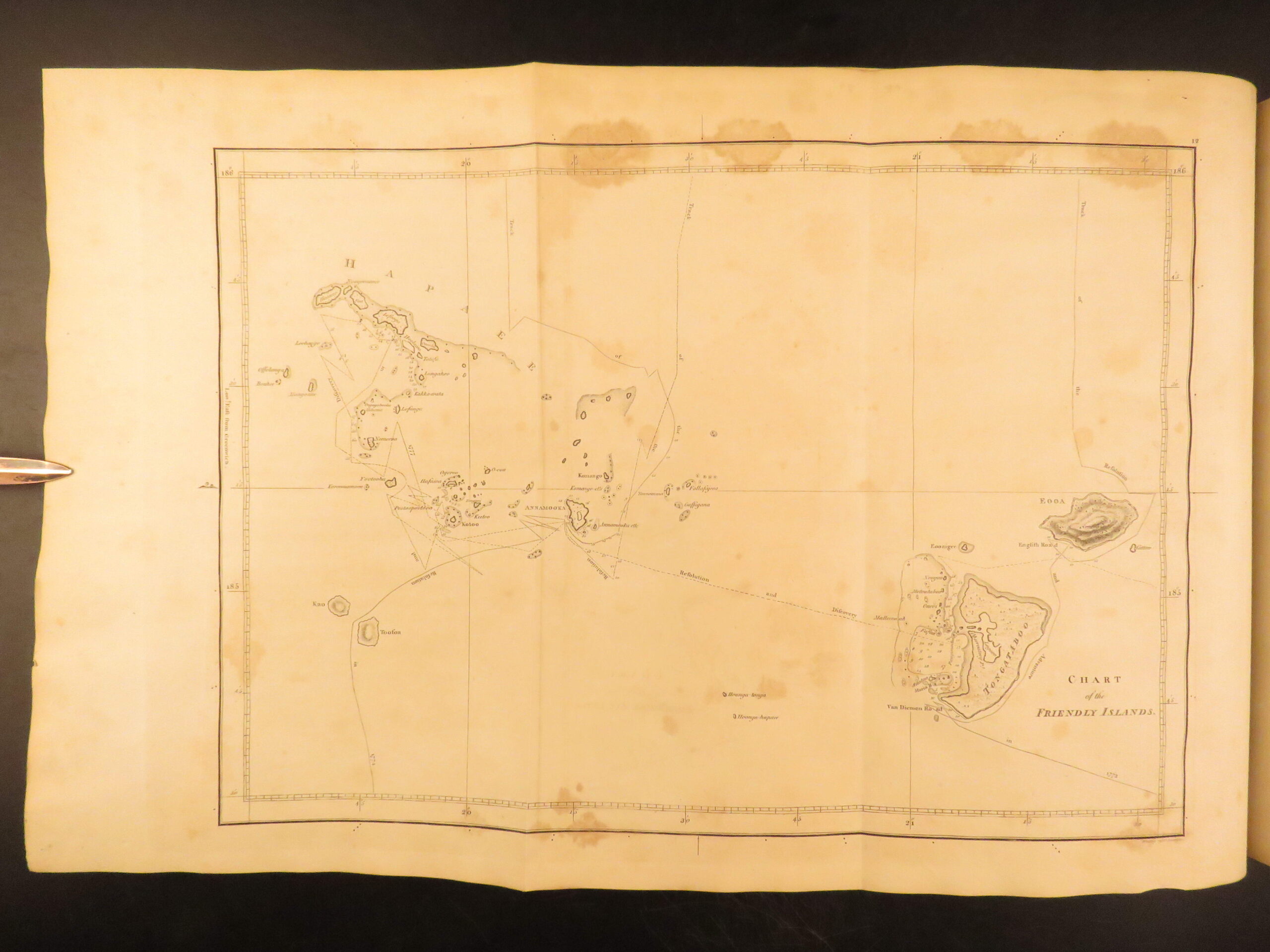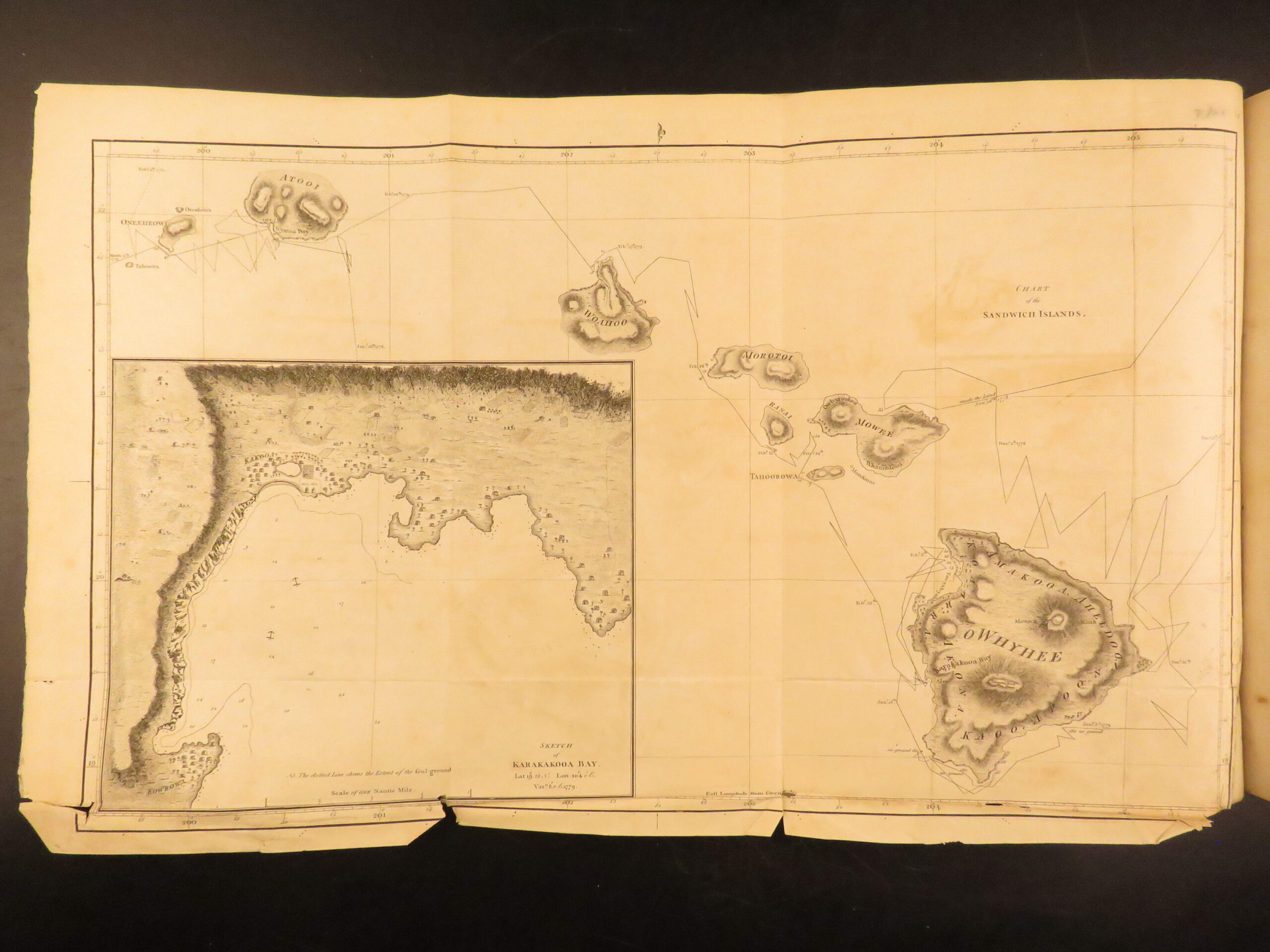 This 1784 first quarto edition of the third voyage is incredibly rare and valuable! In it, authors describe Cook’s experiences amongst the natives of North America, walrus hunts, and even an illustrated account of Cook’s death in Hawaii! Note the highly coveted full-page and folding maps – including the map of the Sandwich Islands!