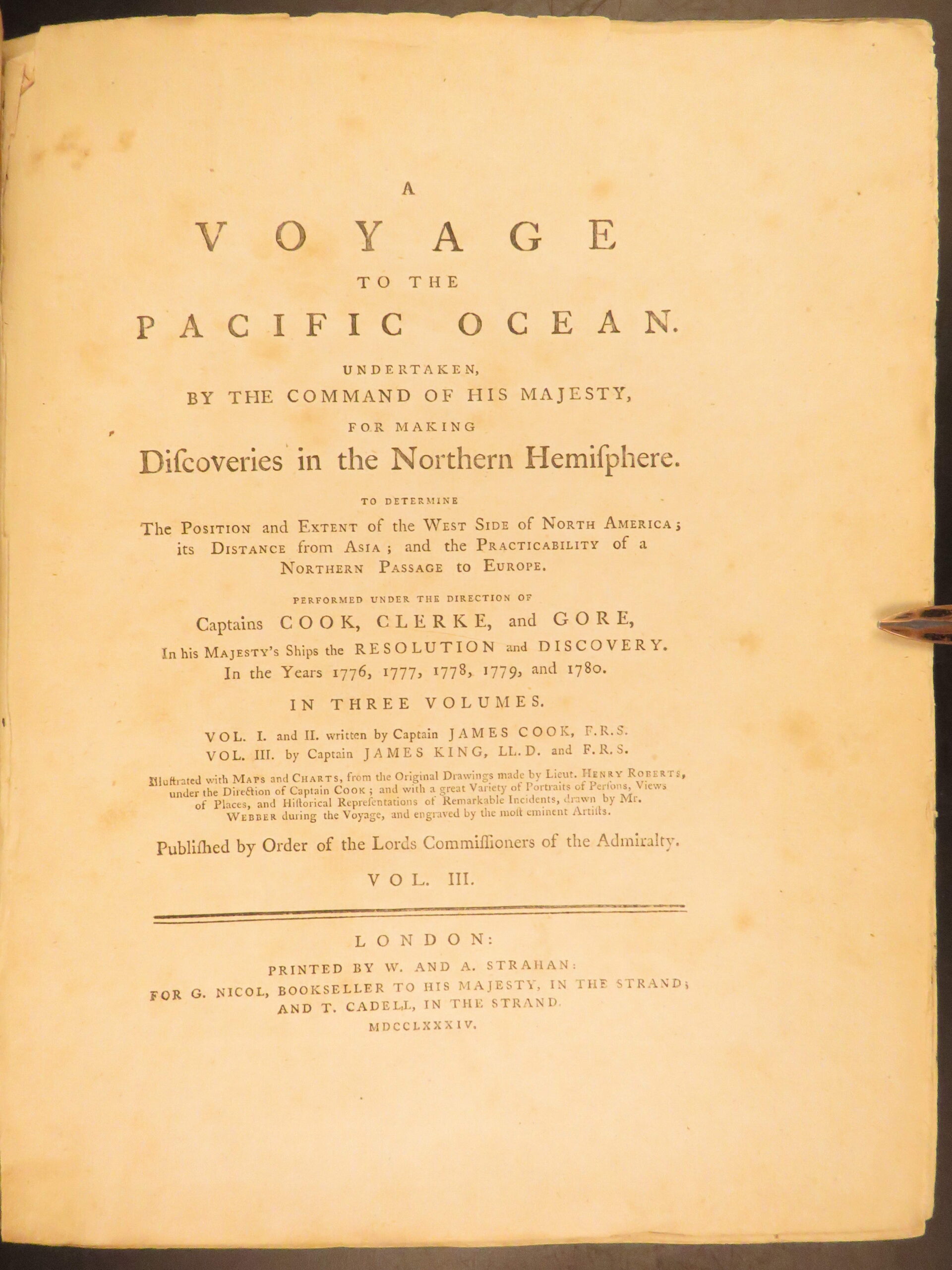 A voyage to the Pacific Ocean: undertaken by command of His Majesty, for making discoveries in the northern hemisphere, performed under the direction of Captains Cook, Clerke, and Gore, in the Years 1776, 1777, 1778, 1779, and 1780