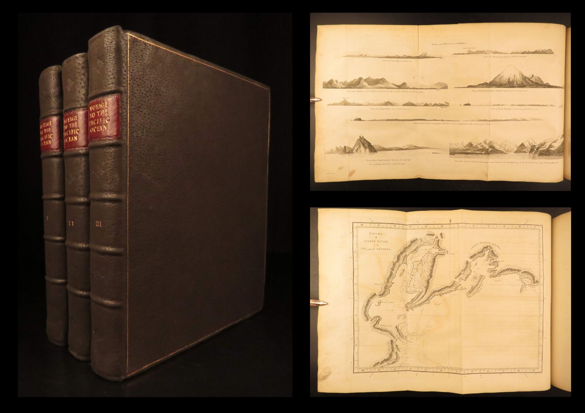 1784 1ed Capt James Cook Pacific Voyage Illustrated MAPS Eskimos Hawaii 3v SET
