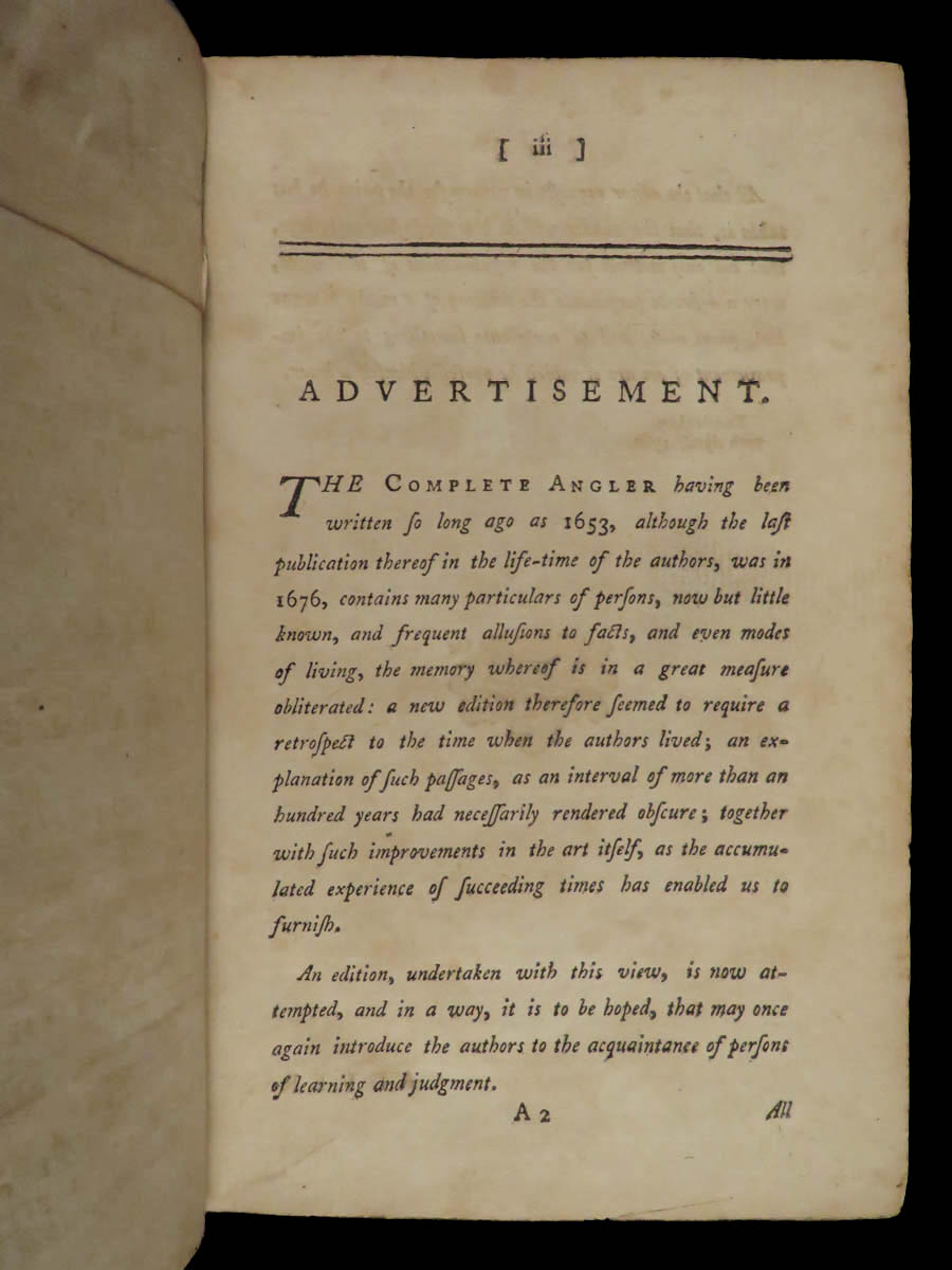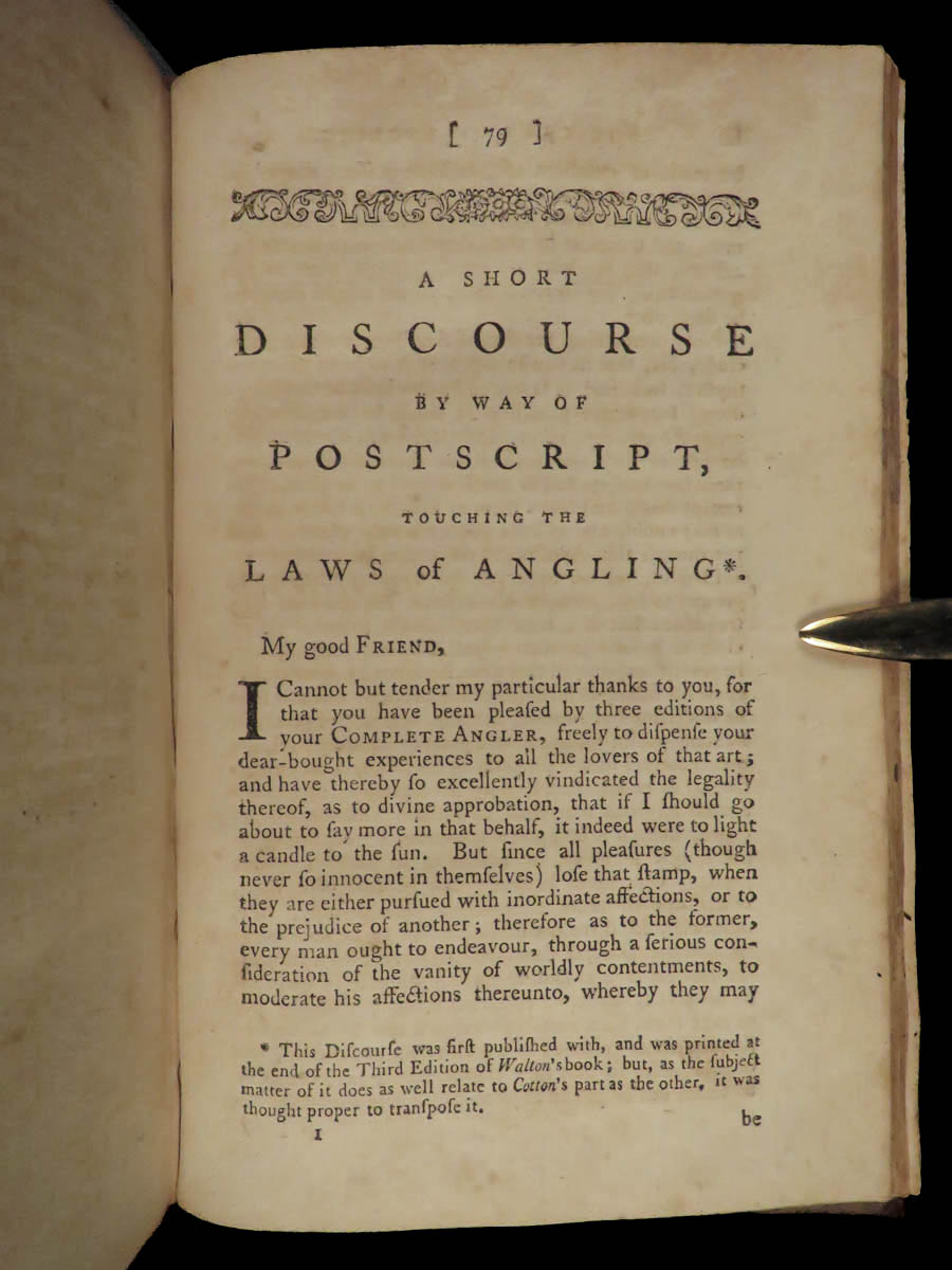 This 1784 edition includes woodcut illustrations most of which depict fish and fishing tackle. It was edited by John Hawkins, and the Hawkins editions are some of the best of all ‘Angler’ editions.