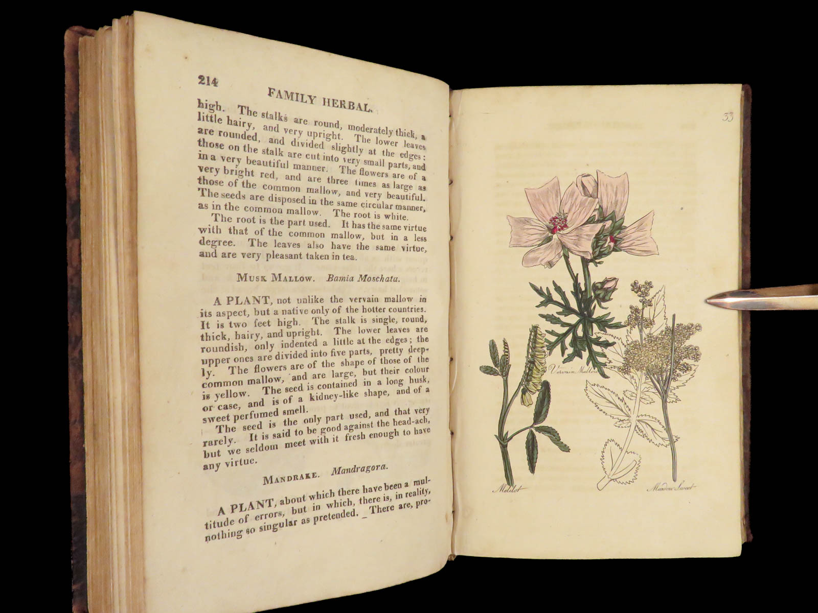 John Hill was an 18th-century English botanist who published a number of botanical works including an important family medical book entitled ‘The Family Herbal’. Seeing reprints for nearly a century after its first edition, this work is filled with direction on growing plants and vegetables, their medical properties, preservation of roots, leaves, seeds, and flowers, recipes for distillation and medical syrups, and much more. And while the contents of this work are highly interesting, the most desirable aspect of this work is the abundance of beautiful, full-page color engravings throughout.