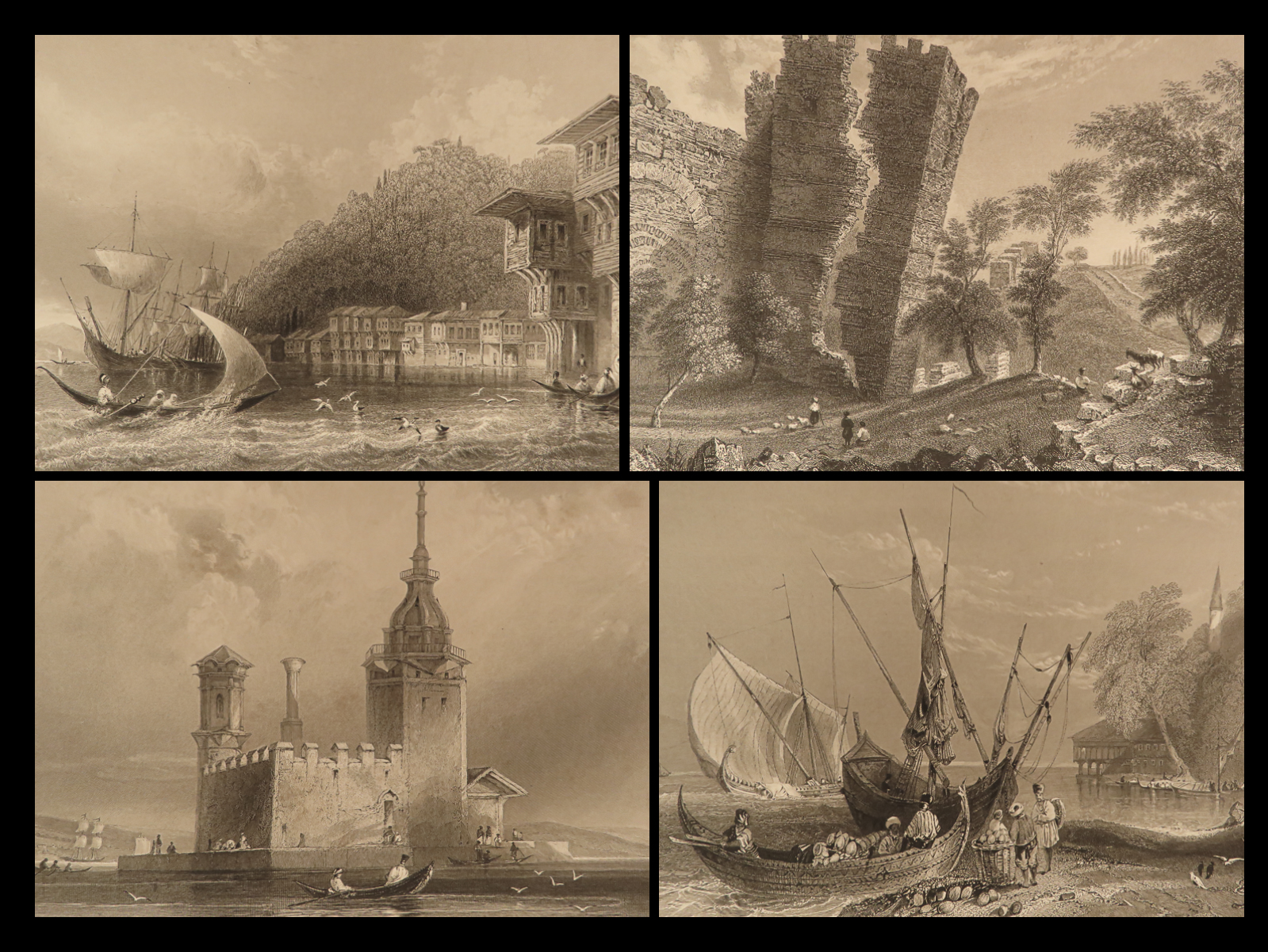 1843 Beauties of Bosphorus TURKISH Ottoman Empire Sultan Danube MAP Bartlett ART