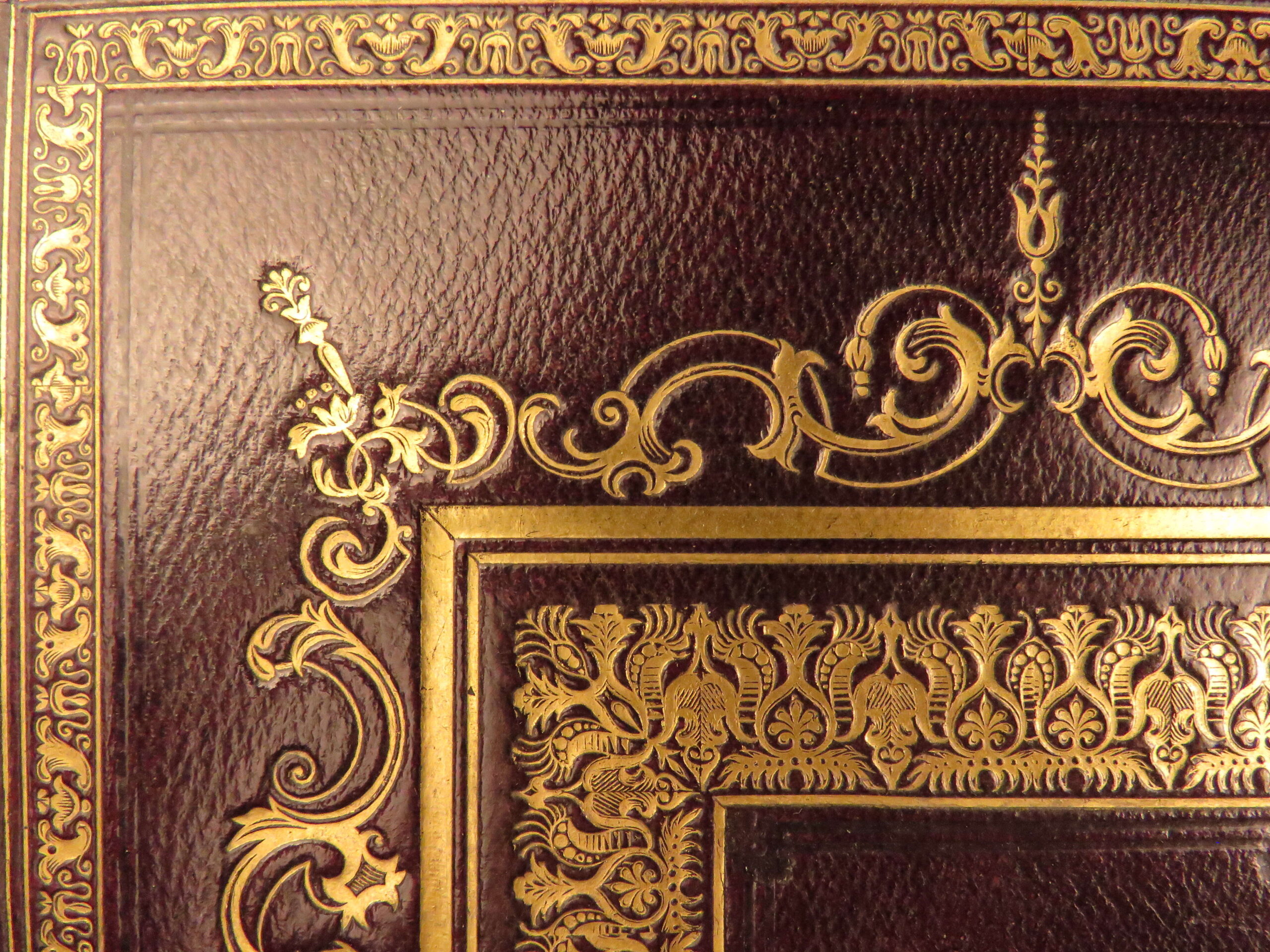 Bound in full leather, decorative ornate gilt accents. The text block remains tight and secure. Marbled end papers are clean. Little to no exterior wear, only light wear at corners. Near Fine.