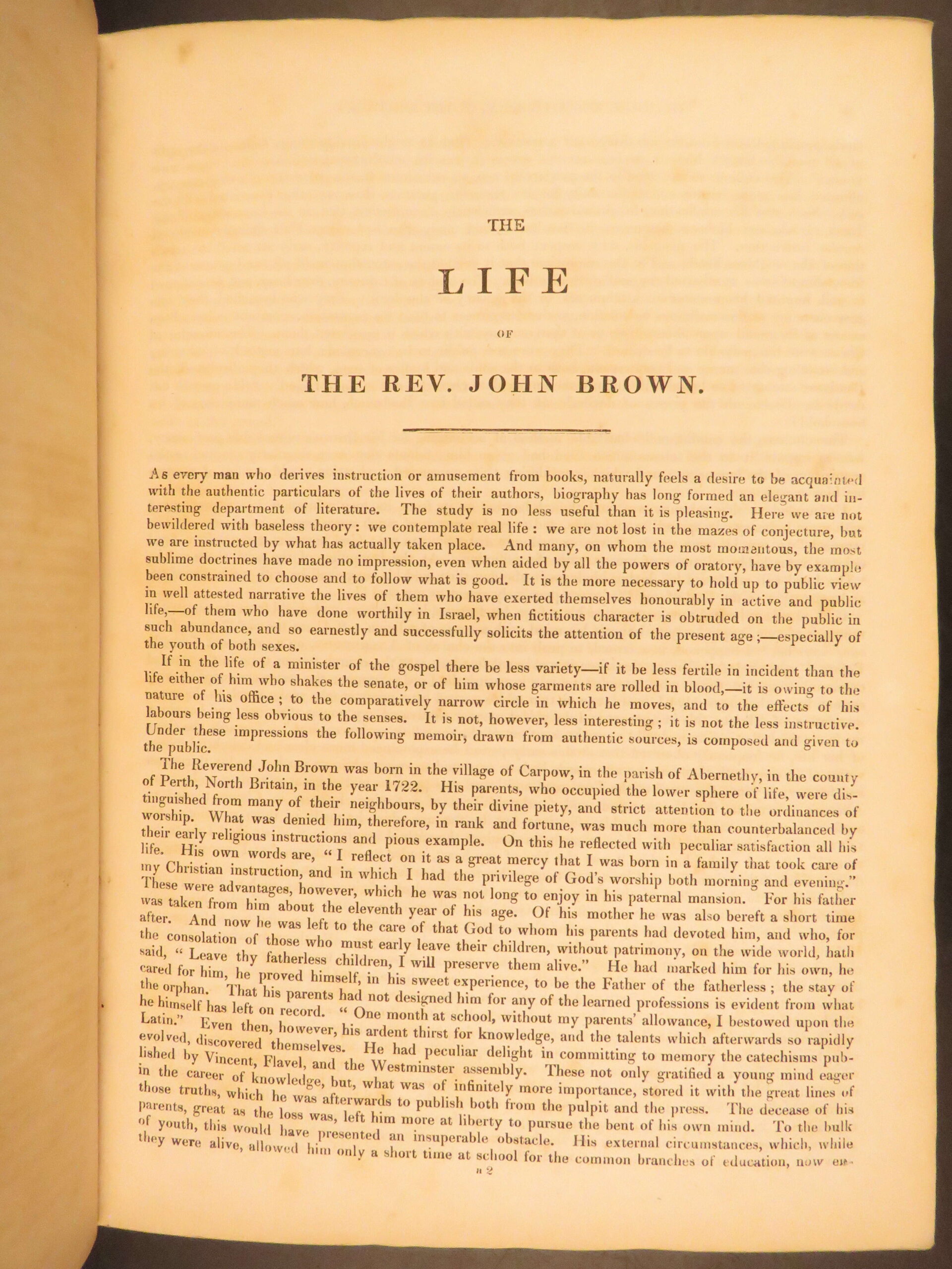 The Self-Interpreting Bible by John Brown was first issued in 1778 and quickly became one of the most circulated annotated Bibles in Scotland and England. It features historical chronologies, and marginal references along with instructions on how to understand the Bible and read it properly.