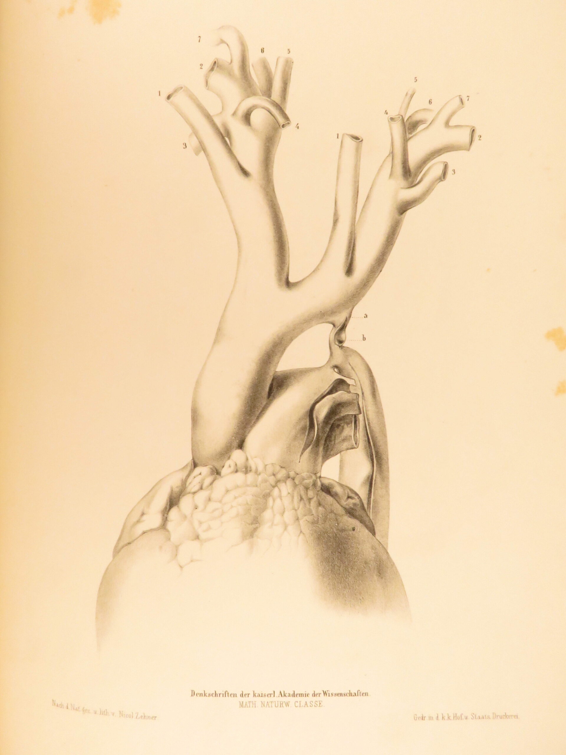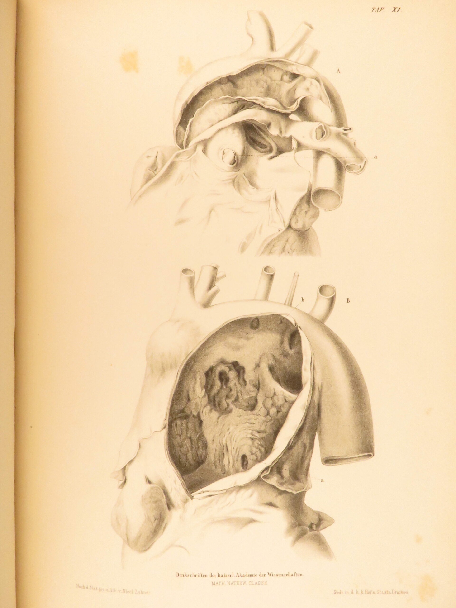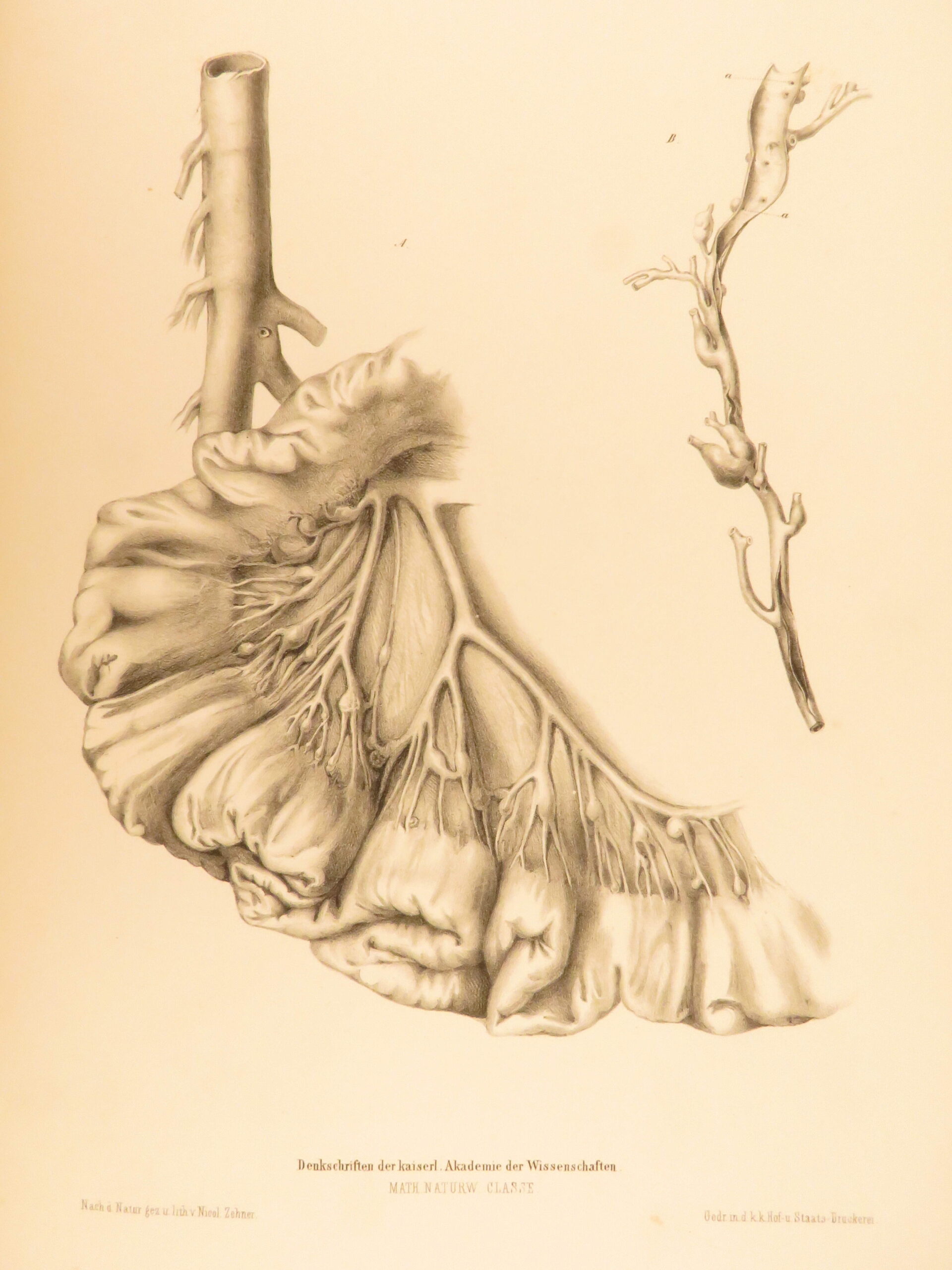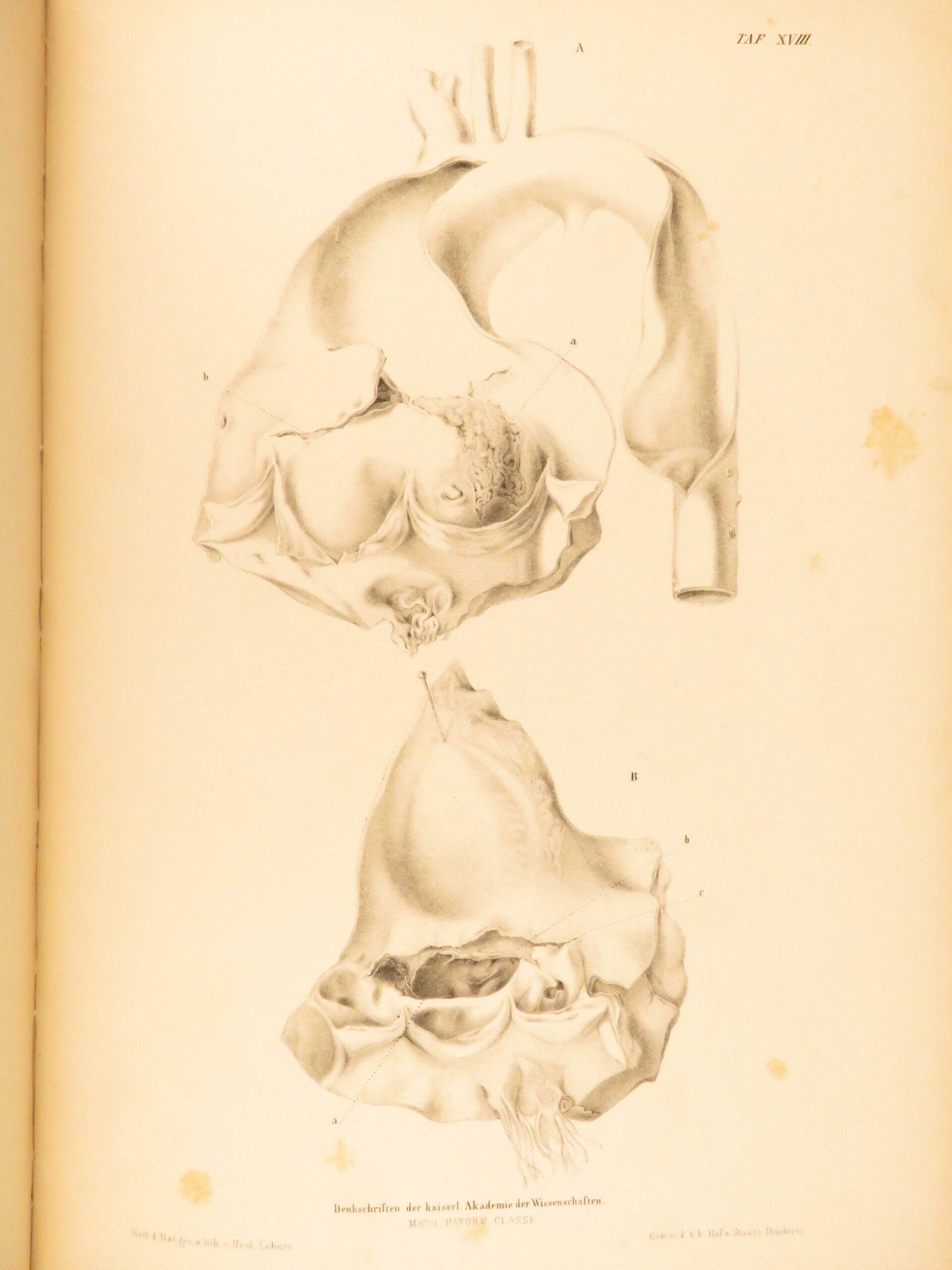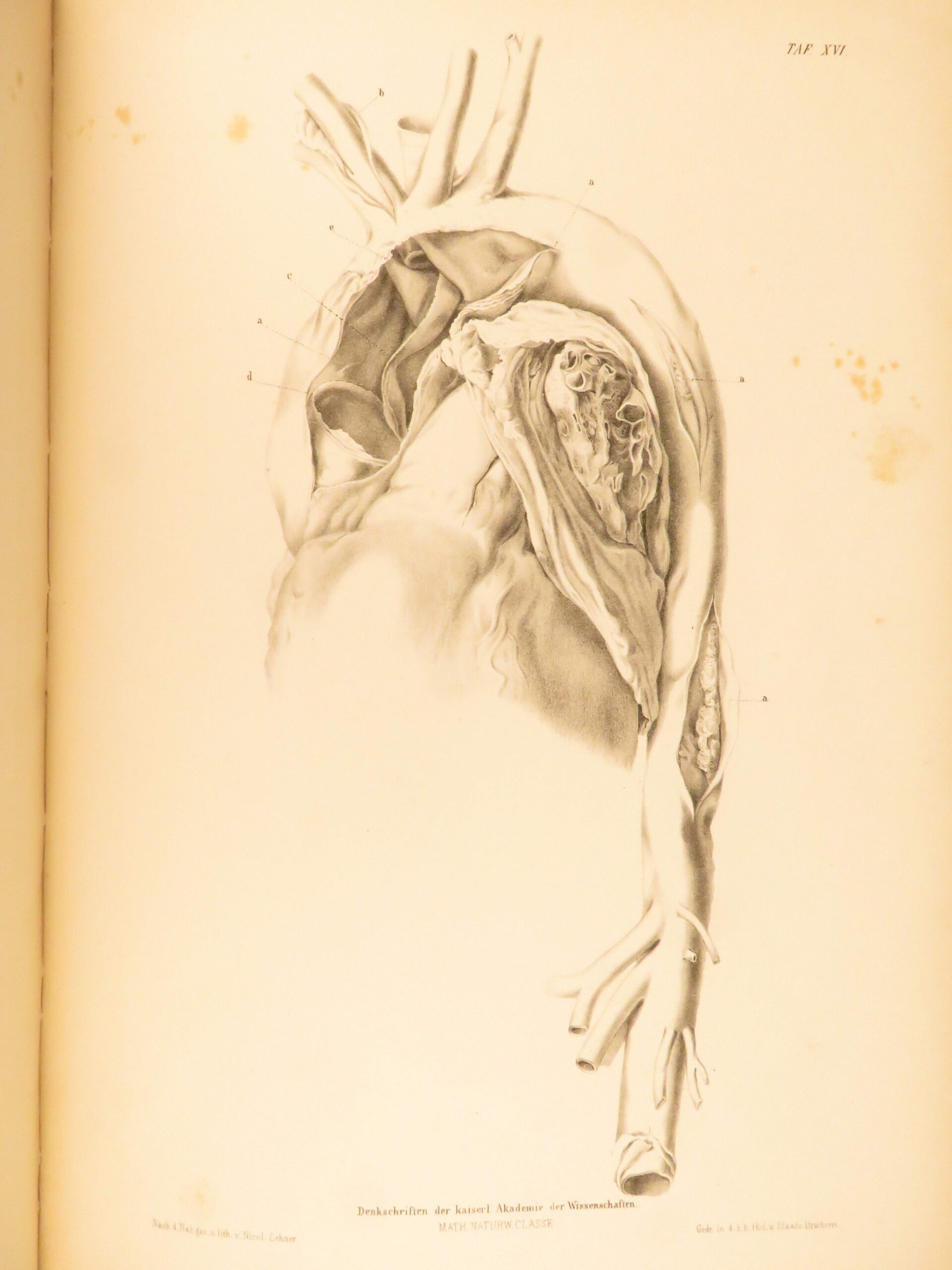1852 rokitansky diseases of arteries medicine surgery illustrated german folio |   carl von rokitansky was a 19<sup>th</sup>-century austrian physician who, in addition to establishing schools of medicine, was a key figure in developing diagnostic methods using science. It was through his own methods of testing and experimenting that he was able to identify some of the most common diseases of the arteries. In his book “diseases of the arteries”, rokitansky describes his autopsy methods for looking at and describing arteries. First published in 1851, this book was a massive success and proved to be a reliable resource for physicians treating arterial diseases. This 1852 folio of rokitansky’s ‘arteries’ includes 23 full-page engravings. While 19<sup>th</sup>-century medical folios are rare in themselves, a work specifically focused on arteries is considerably more exclusive.   item number: #26163 price: $750