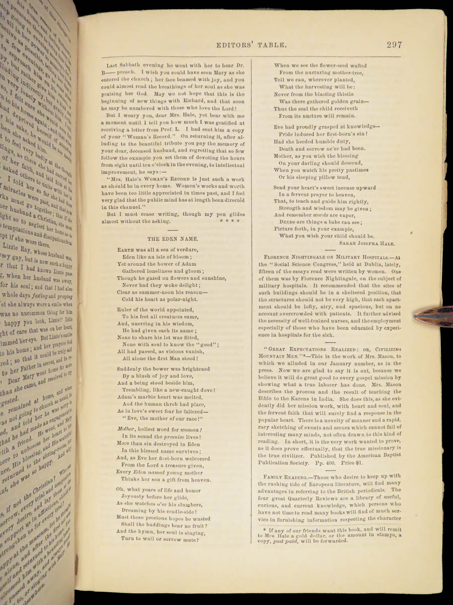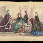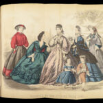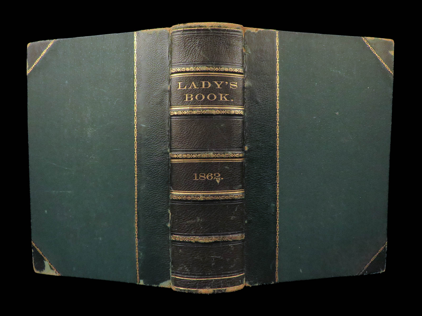 ‘Godey’s Lady’s Book’ was a 19th-century American magazine known for its collection of poetry, illustrations, and articles by prominent female authors and artists. It addressed fashion trends, women’s dress, and directions on how to make dresses and garments. ‘Godey’s Lady’s Book’ was also a source of popular literature at the time; many volumes featured the work of prominent authors and poets – this particular 1862 issue includes short stories and poems, as well as countless embroidery and costume plans.