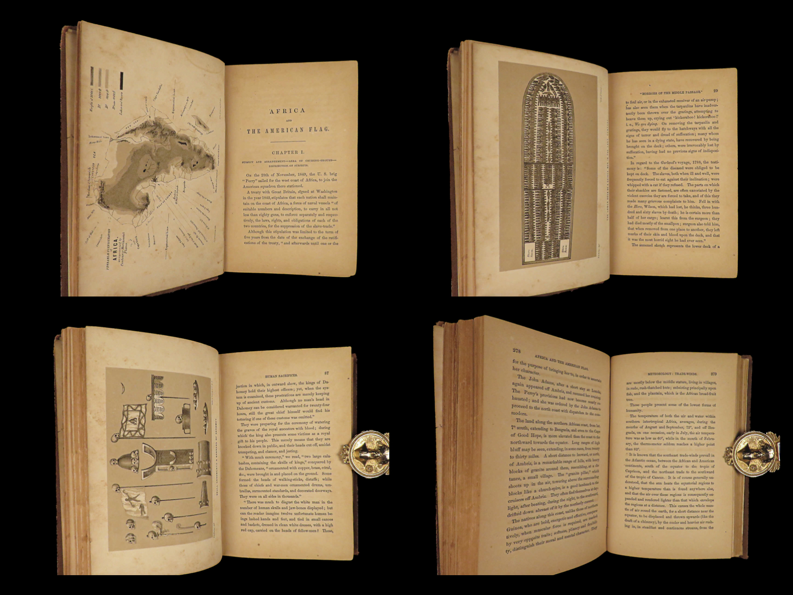This fine 1862 edition is Foote’s own account of his experience as commander of the Perry off the African coast in the early 1850’s, where his dogged attempts to suppress the African slave trade (illegal then under American law) became legendary. His impassioned account here did much to stir the growing public repugnance for the trade in America. This edition includes seven hand tinted steel lithographic plates and a map, with the frontis of the slave trade in action!