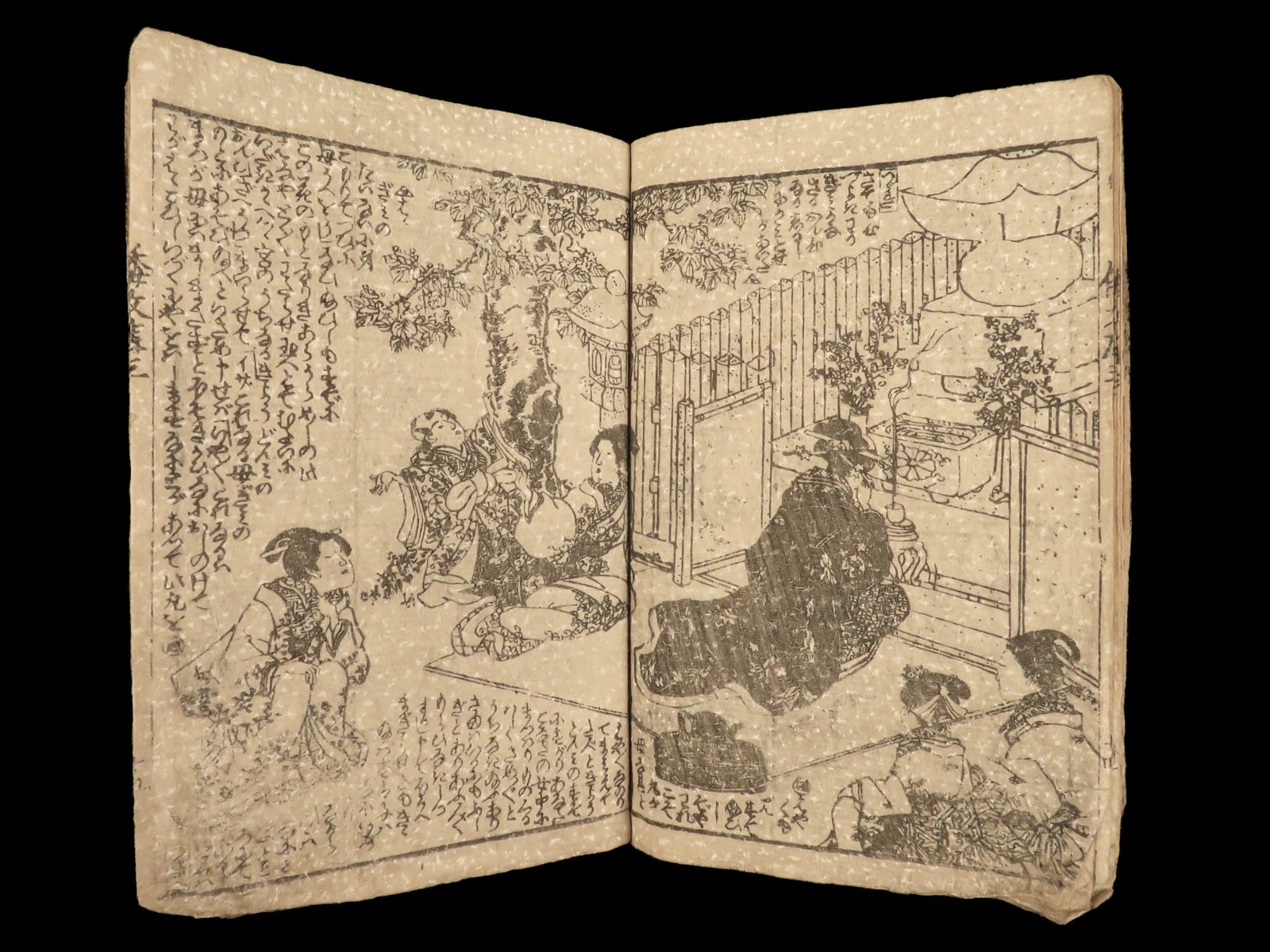 This rare 1867 edition is written in the typical handwritten column format with illustrations of samurai, courtesans, and more!