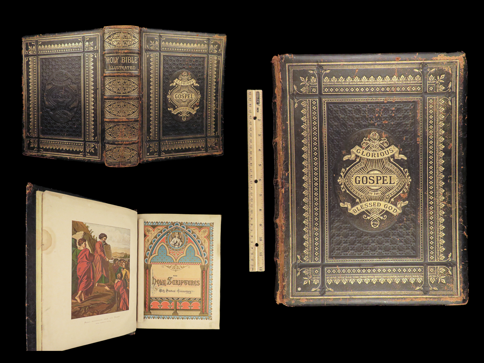 1875 BIBLE by Scottish John Brown Edinburgh Scotland Illustrated Huge FOLIO KJV