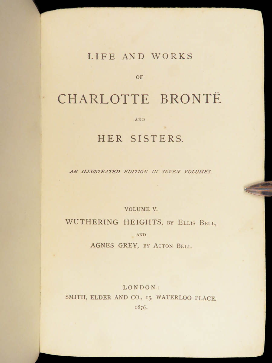 The Brontë Sisters produced some of the most famous and popular novels of the 19th-century including Jane Eyre, by Charlotte. This set of volumes was published from 1876 to 1878 by Smith and Elder and includes famous works such as ‘Jane Eyre’, ‘Wuthering Heights’, and ‘Shirley’.