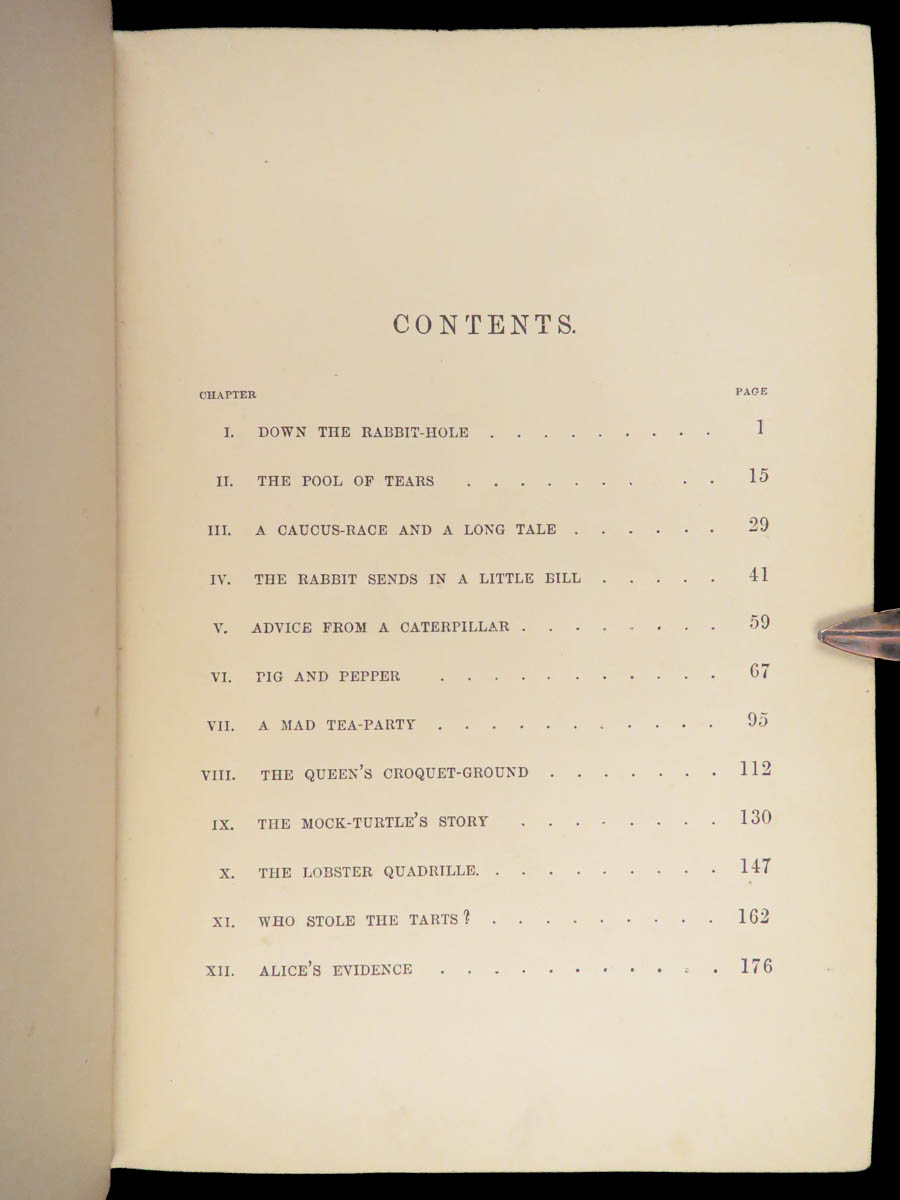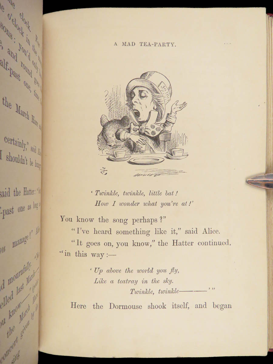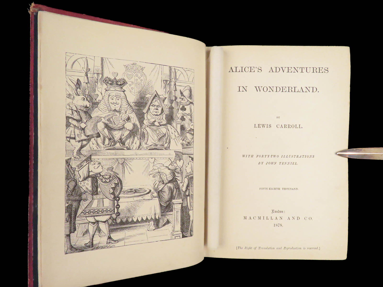 A fine 1878 edition of “Alice in Wonderland”, featuring forty-two of Tenniel’s bizarre, cartoon illustrations including a charming cover board illustration. Tenniel’s illustrations are often considered the best of the ‘Alice’ illustrations.