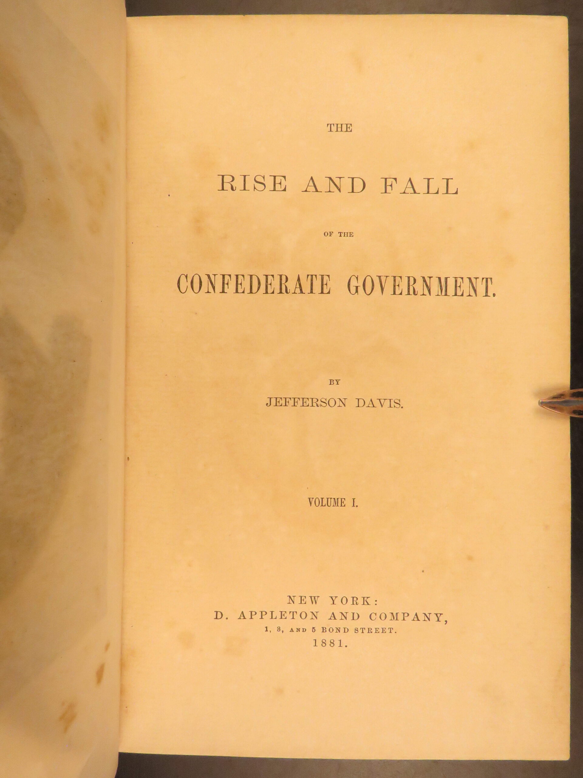 1881 confederate jefferson davis 1ed rise & fall confederacy slavery civil war | <em>“i worked night and day for twelve years to prevent the war, but i could not. The north was mad and blind, would not let us govern ourselves, and so the war came. ” </em> – jefferson davis   jefferson davis’s ‘<em>rise and fall of the confederate government’</em> was an important book on the history of the confederate states with a plethora of explanations on the causes that led to the civil war, particularly slavery. Davis discusses the history of slavery and defended the fundamentals of its morality.   according to nevins, this work  “…conceals more than it reveals of the inner history of the confederacy…an argumentative dissertation on secession and states’ rights. ”