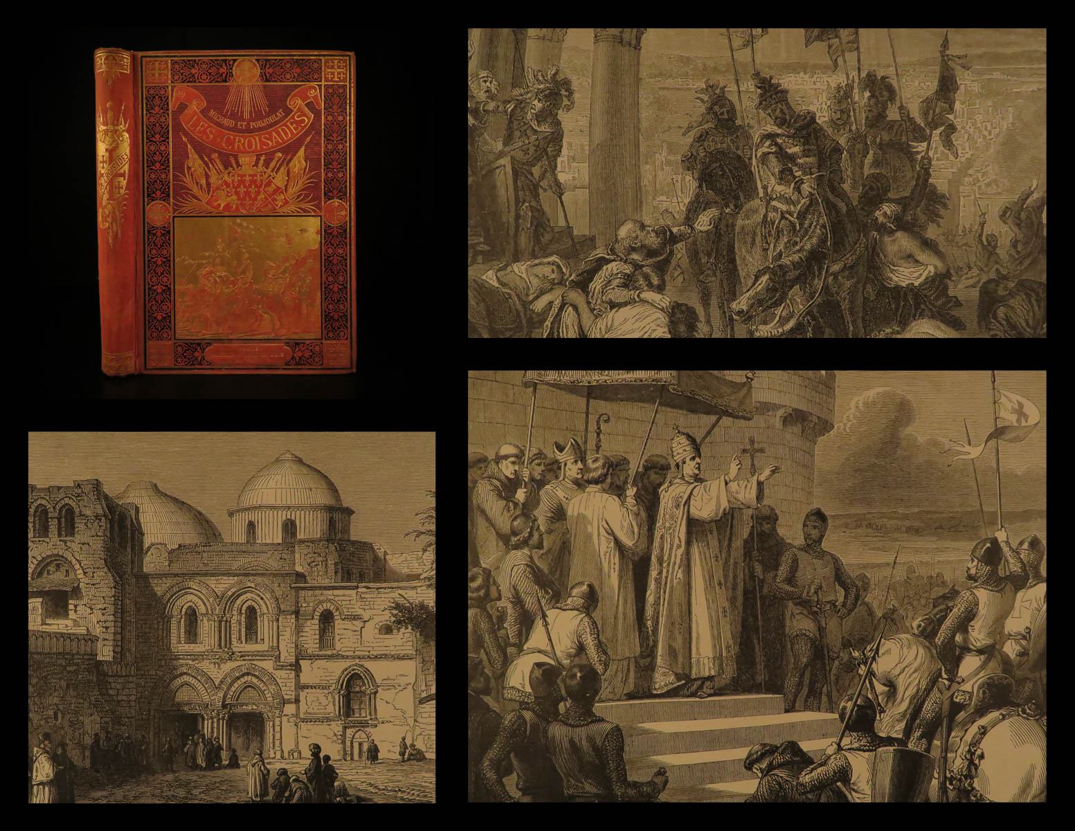 1883 BEAUTIFUL BINDING History of CRUSADES Michaud Wars Jerusalem Illustrated