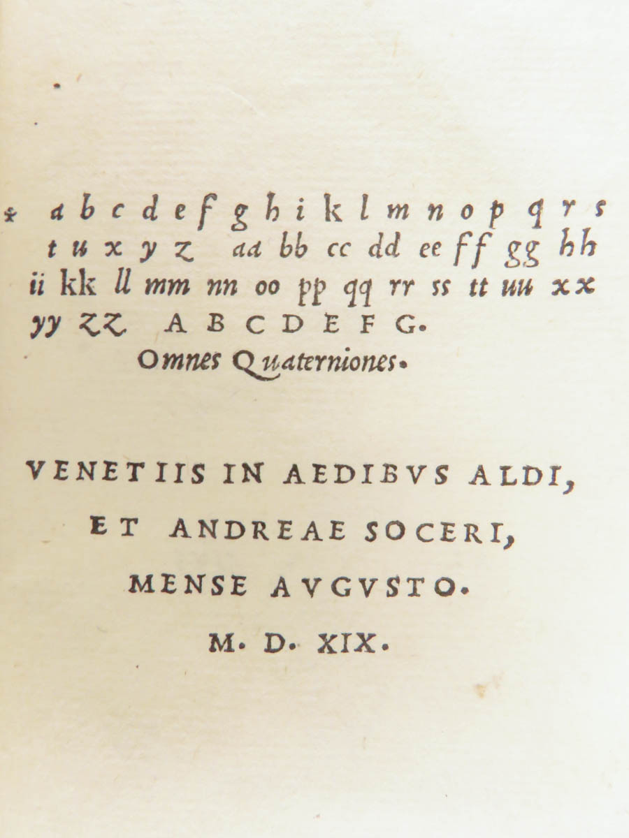 - Printed by Aldus and Andrea Torresano during a pivotal transitional period in Aldine press history