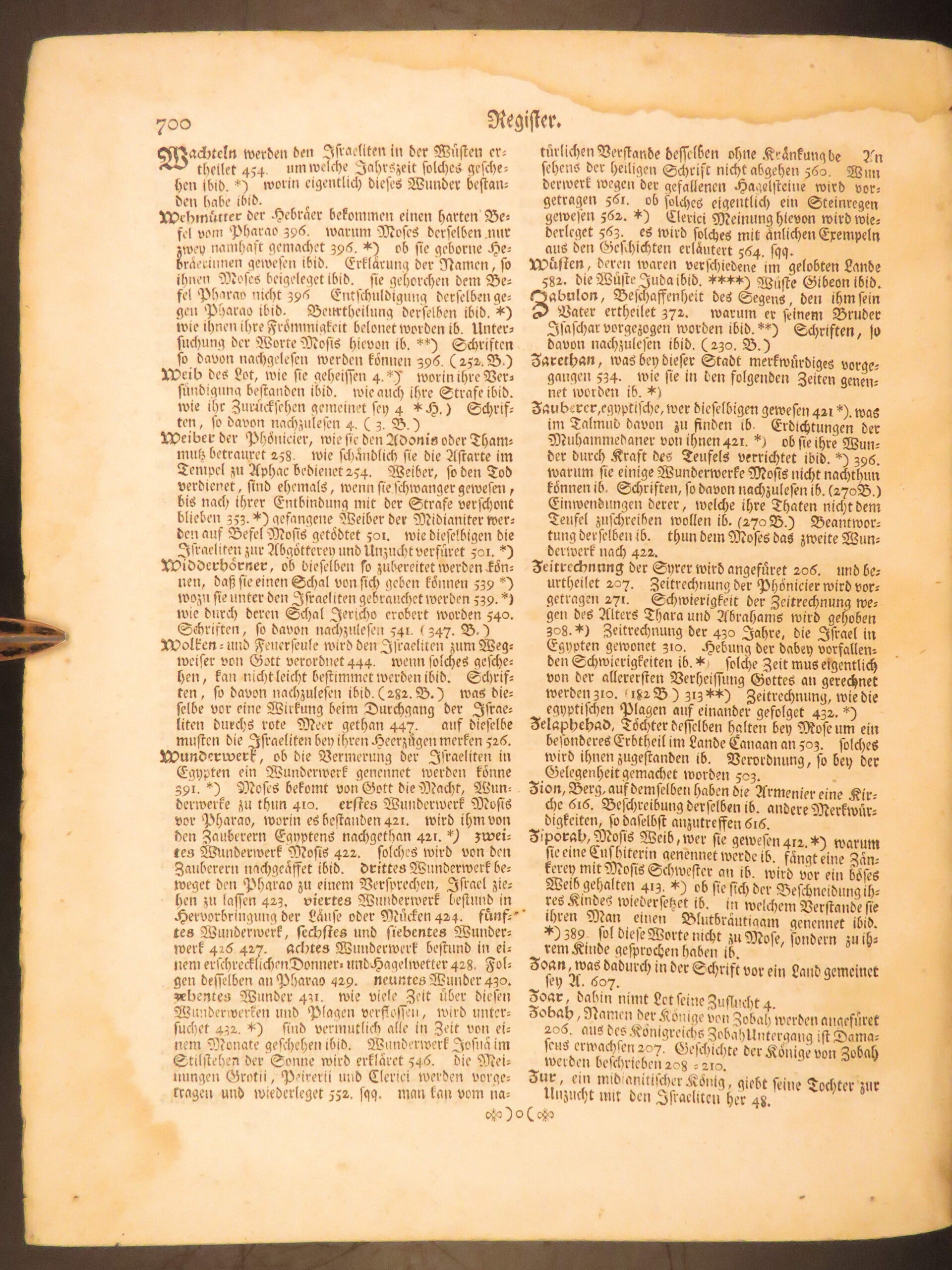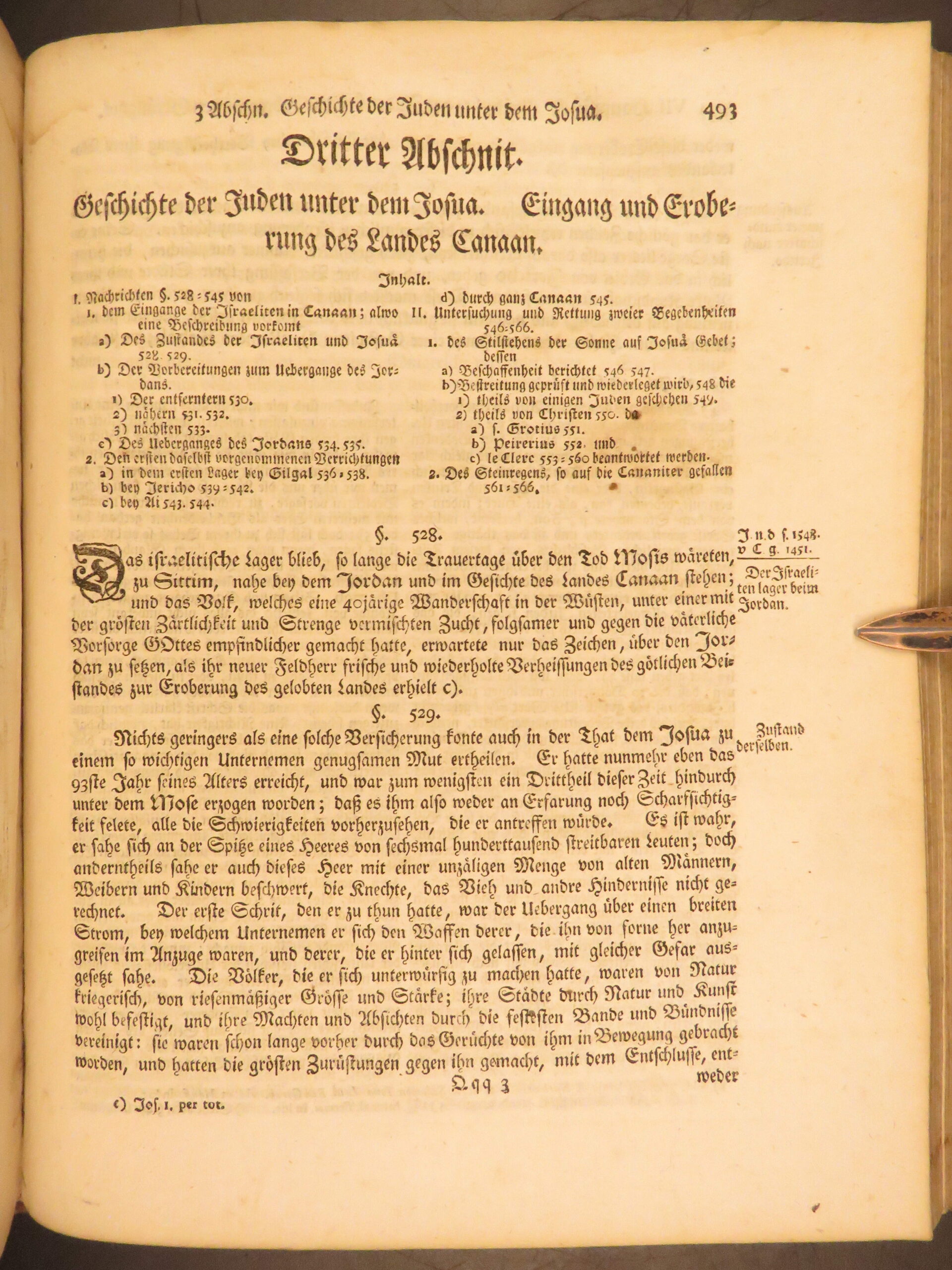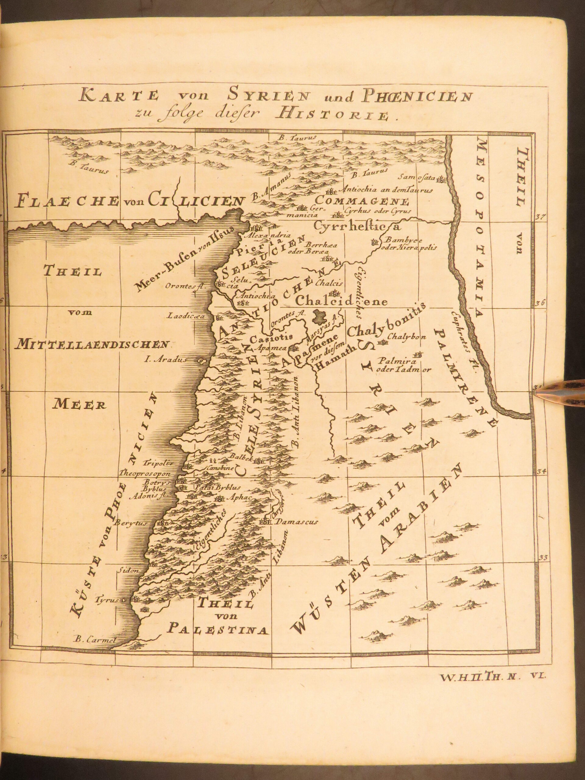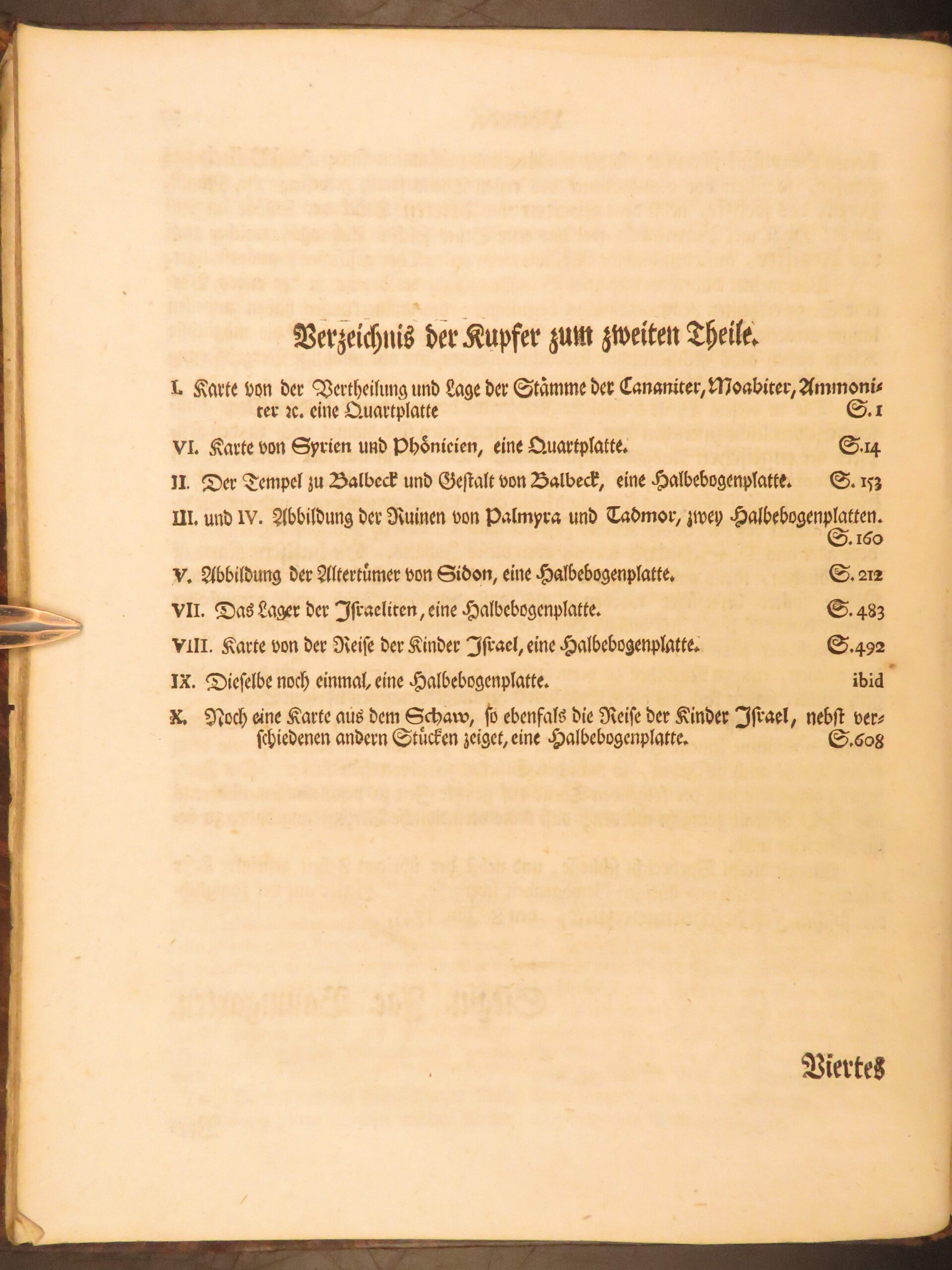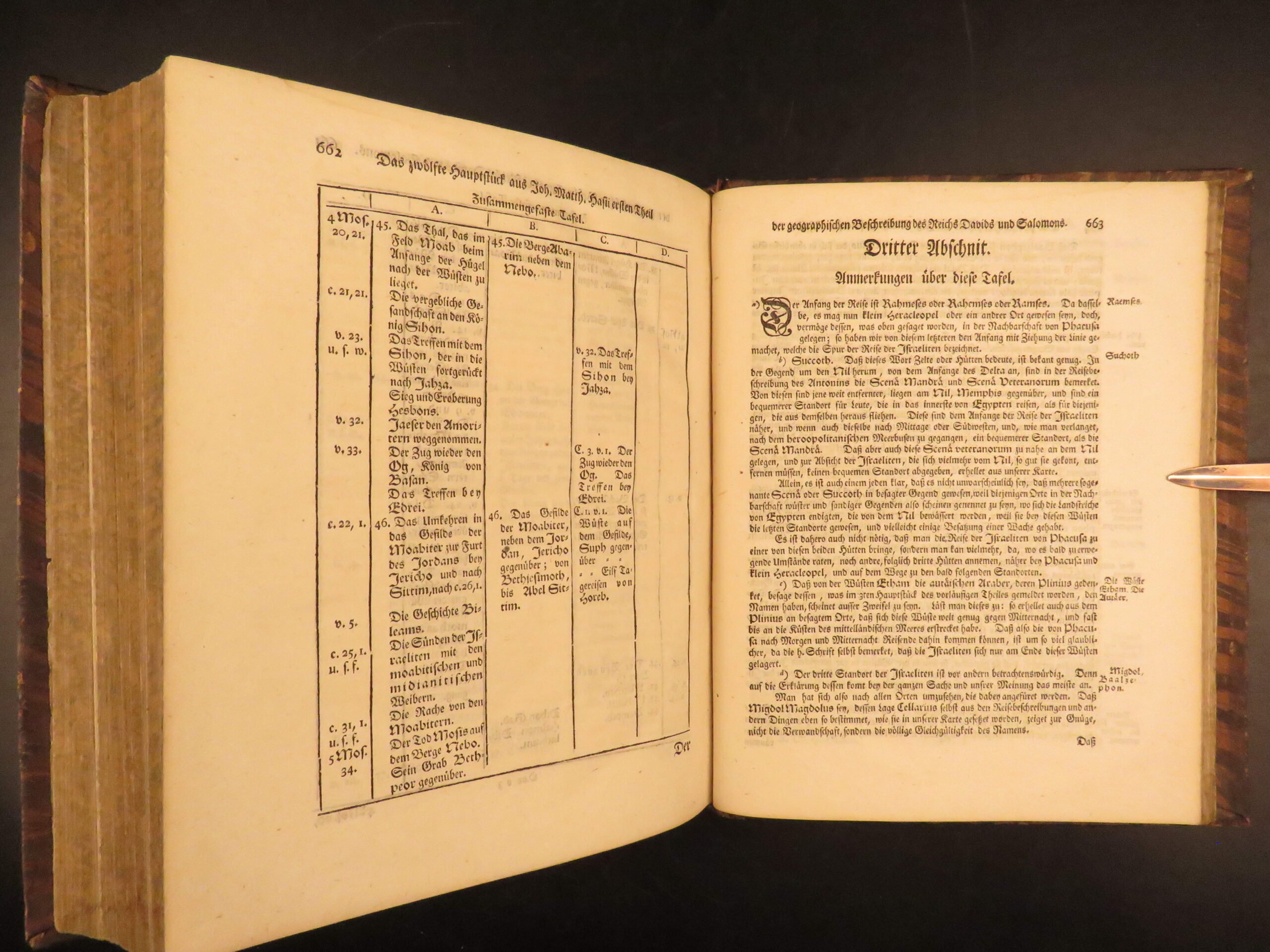 The Algemeinen Welthistorie was an 18th-century historical journal collected to provide a complete and thorough history of the world. First edited by Siegmund Baumgarten and later by Johann Semler, this recurring work was a collection of articles by English scholars then translated and edited by Semler and Baumgarten – who Voltaire called ‘the crown of German scholars.’ This volume concentrates on Biblical antiquity and the ancient Near East. Subjects include the Exodus, the peoples of Canaan, Moab, and Ammon, the Temple of Baalbek, the ruins of Palmyra and Tadmor, and the antiquities of Sidon. Additional sections examine the journey of the Israelites toward the Holy Land, the account of manna, and the leadership of Moses. Ten engraved plates accompany the historical study.
